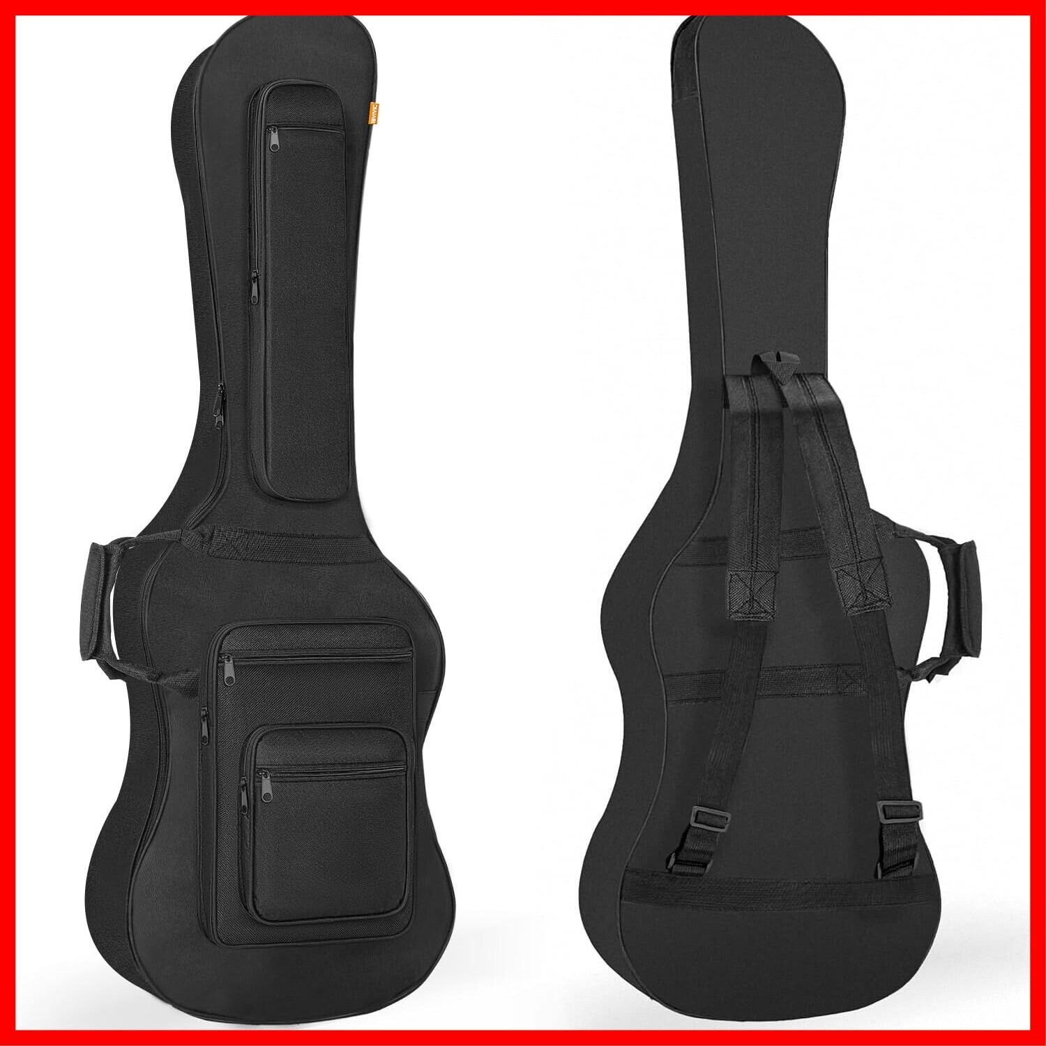 【大容量の収納スペース】このギターケースには、アクセサリー、楽譜、ギターストラップなどの小物を収納できる大きな6つのポケットがあります。必要なものを手軽に持ち運ぶことができます。