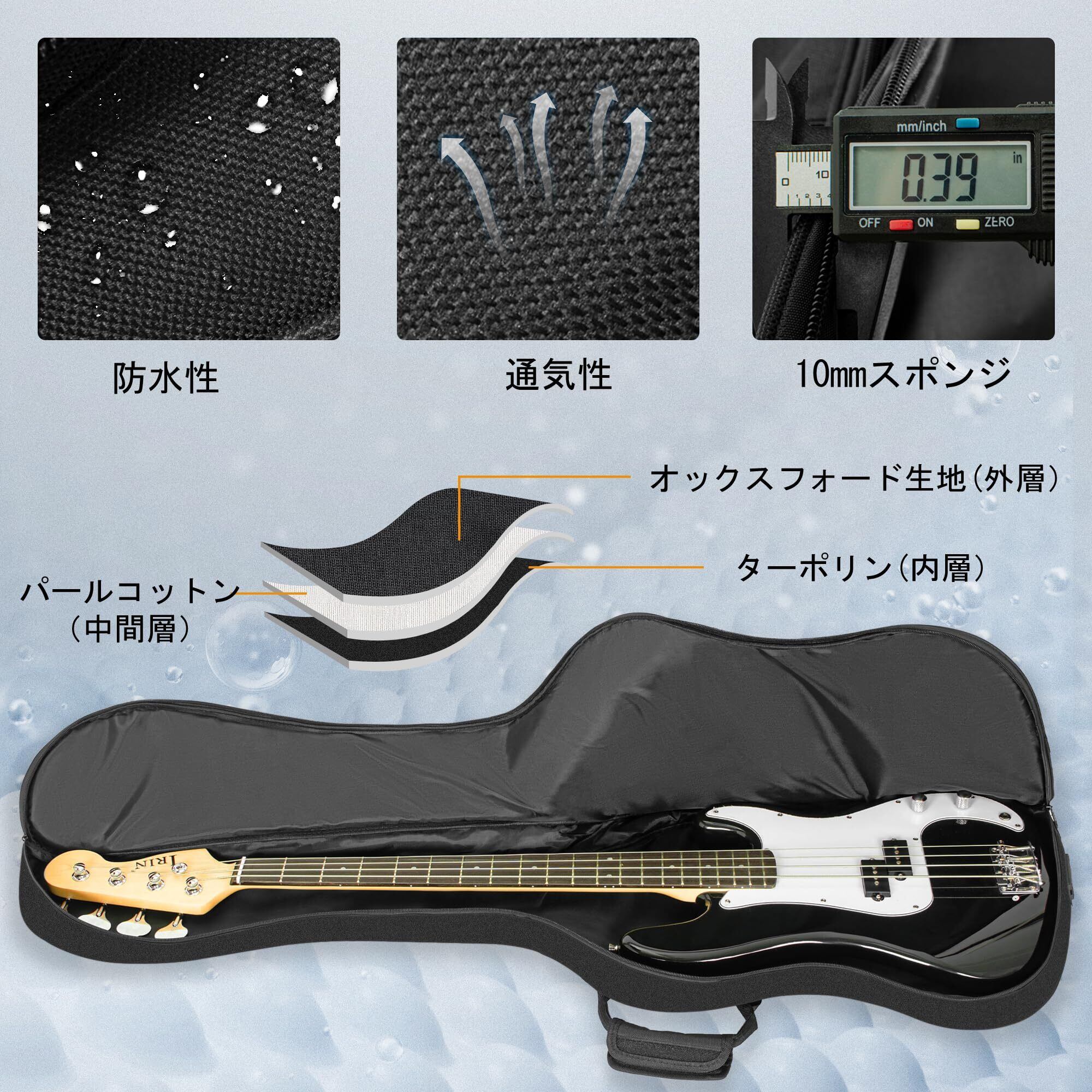IBVIVIC エレキベースケース ベースケース ベースギター ケース 軽量 ベース用ギグバッグ 10mmスポンジ 肩掛け 手提げ 大容量 防水性 耐磨耗性 ブラック