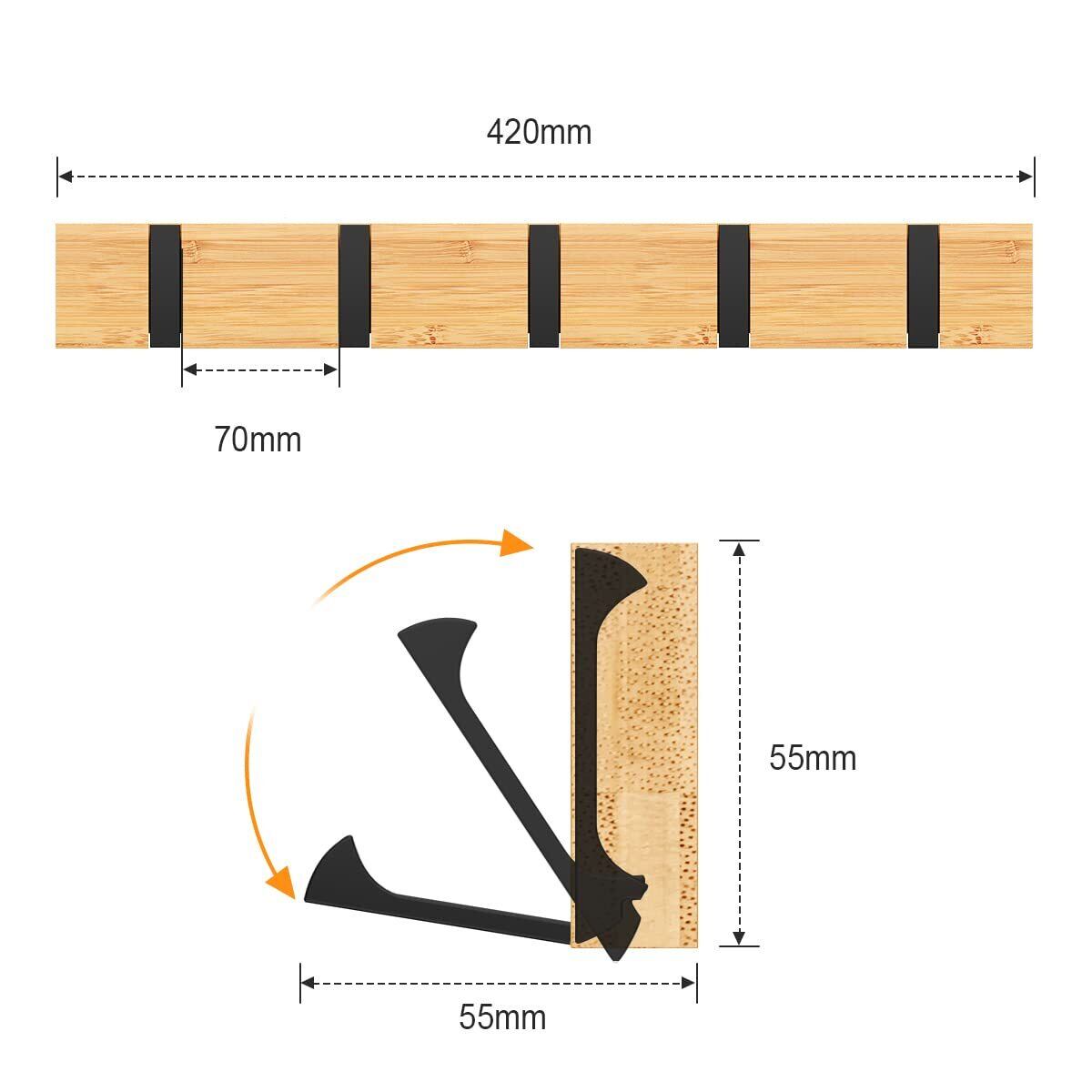 Anjuer ウォールハンガー 壁取り付け式コートラック 5連フック 壁掛けフック 収納家具 物干しハンガー 帽子掛け・洋服掛け・コート掛け 木製(黒フック折り畳み型)