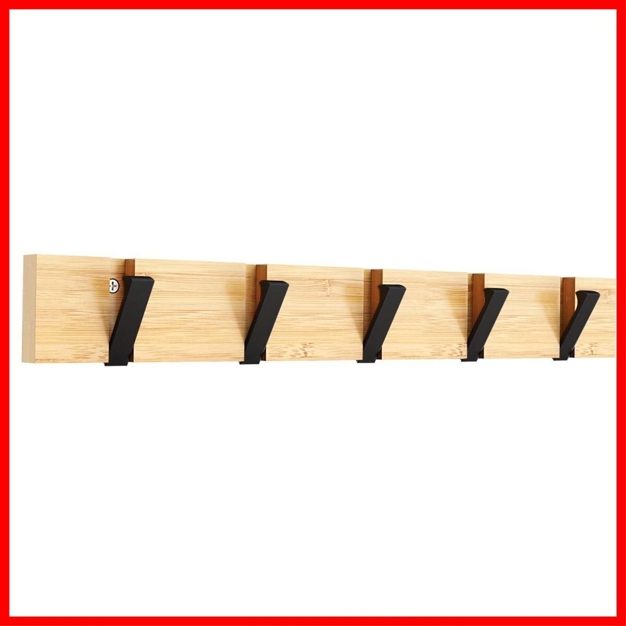 [Anjuer ウォールハンガー 壁取り付け式コートラック 5連フック 壁掛けフック 収納家具 物干しハンガー 帽子掛け・洋服掛け・コート掛け 木製(黒フック折り畳み型)]