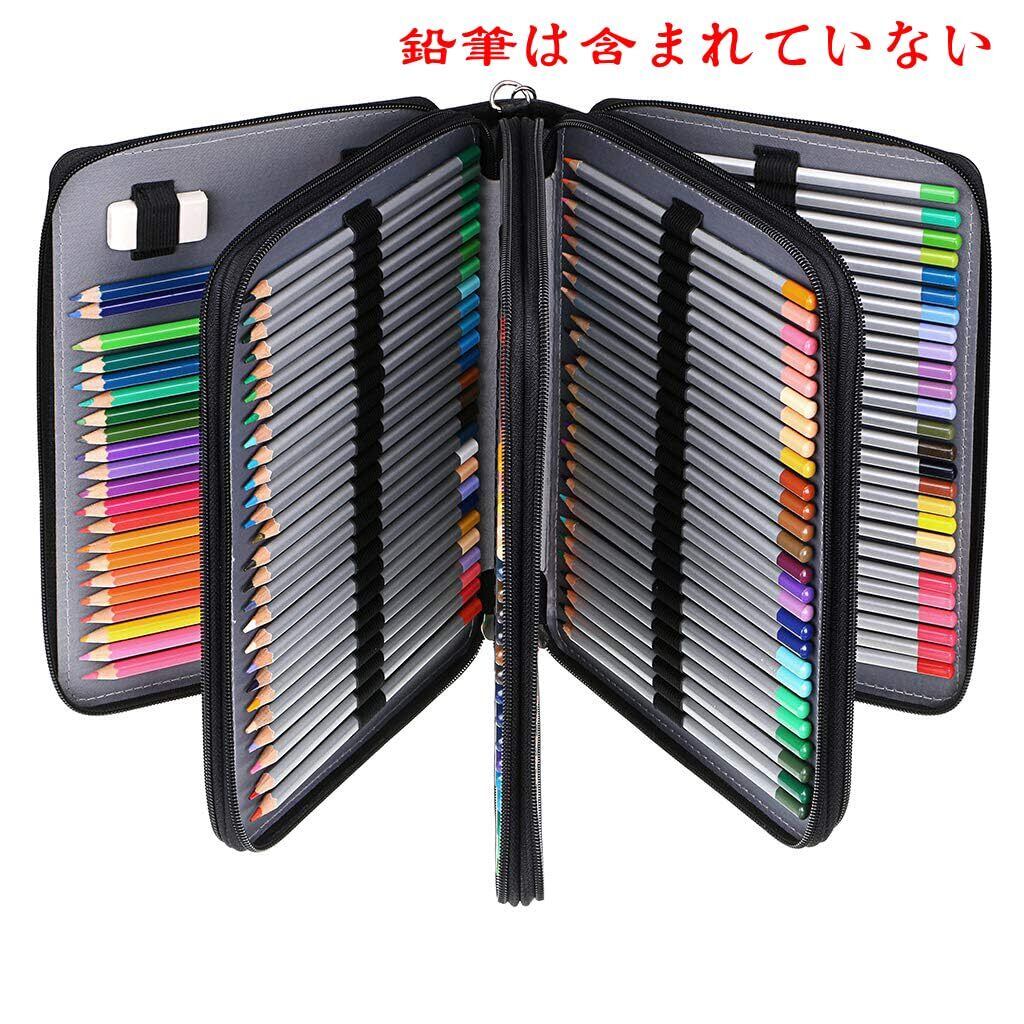 Sumnacon 202本 色鉛筆入りでき PU 色鉛筆ケース 大容量 ペンケース ペンシルホルダー 色鉛筆 ペン 定規 消しゴム 文具収納 筆箱 シンプル 持ち運び便利 ブラック