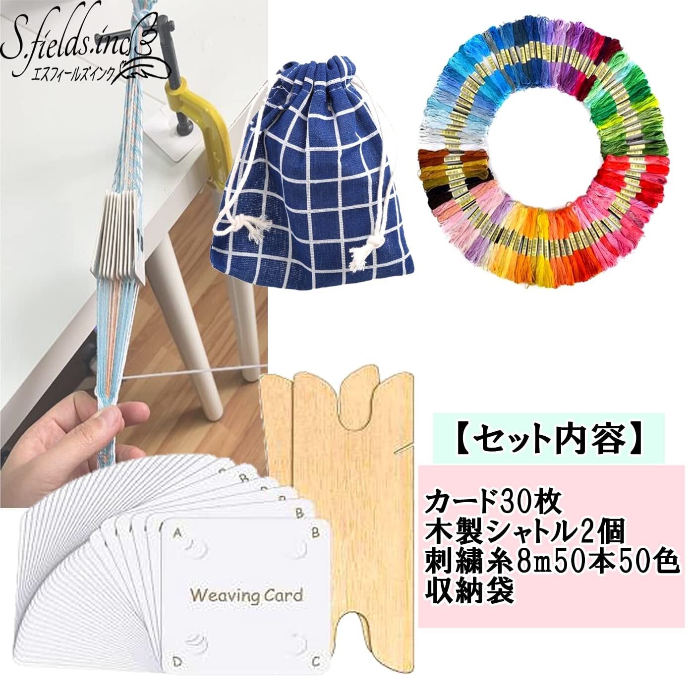 S.fields.inc カード織りセット 織カード30枚 刺繍糸50色 はじめてのバンド織り タブレット織り 初心者