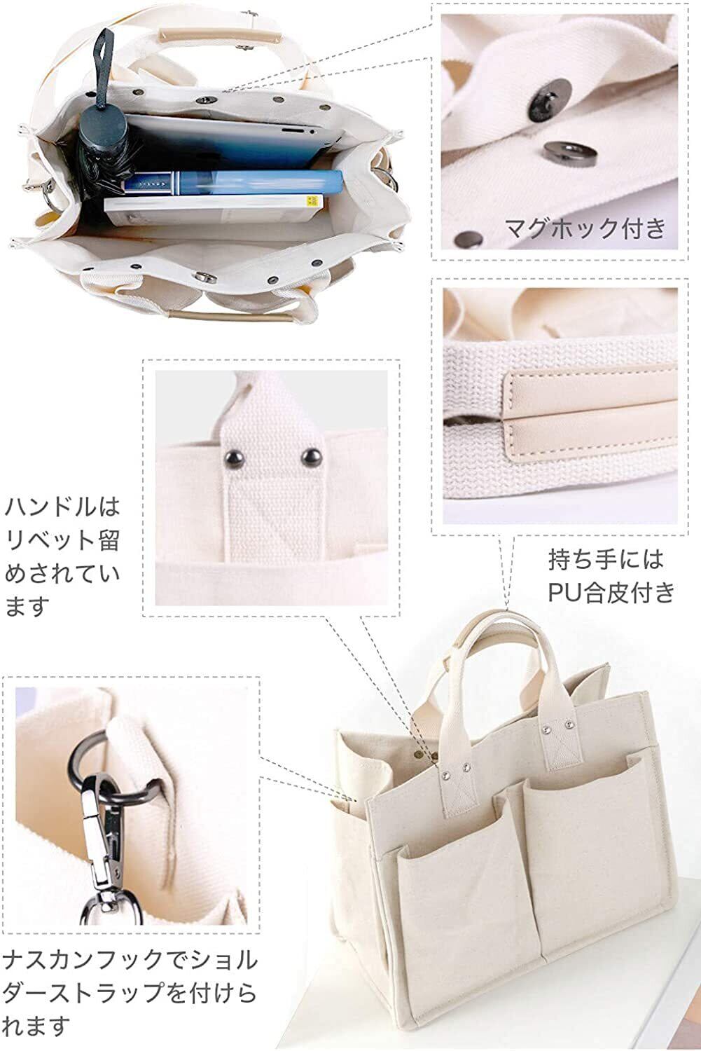 ● 商品名:[ラクエスト] Laquest キャンバス トートバッグ ポケット 多収納 帆布 ショルダー バッグ レディース ハンドバッグ