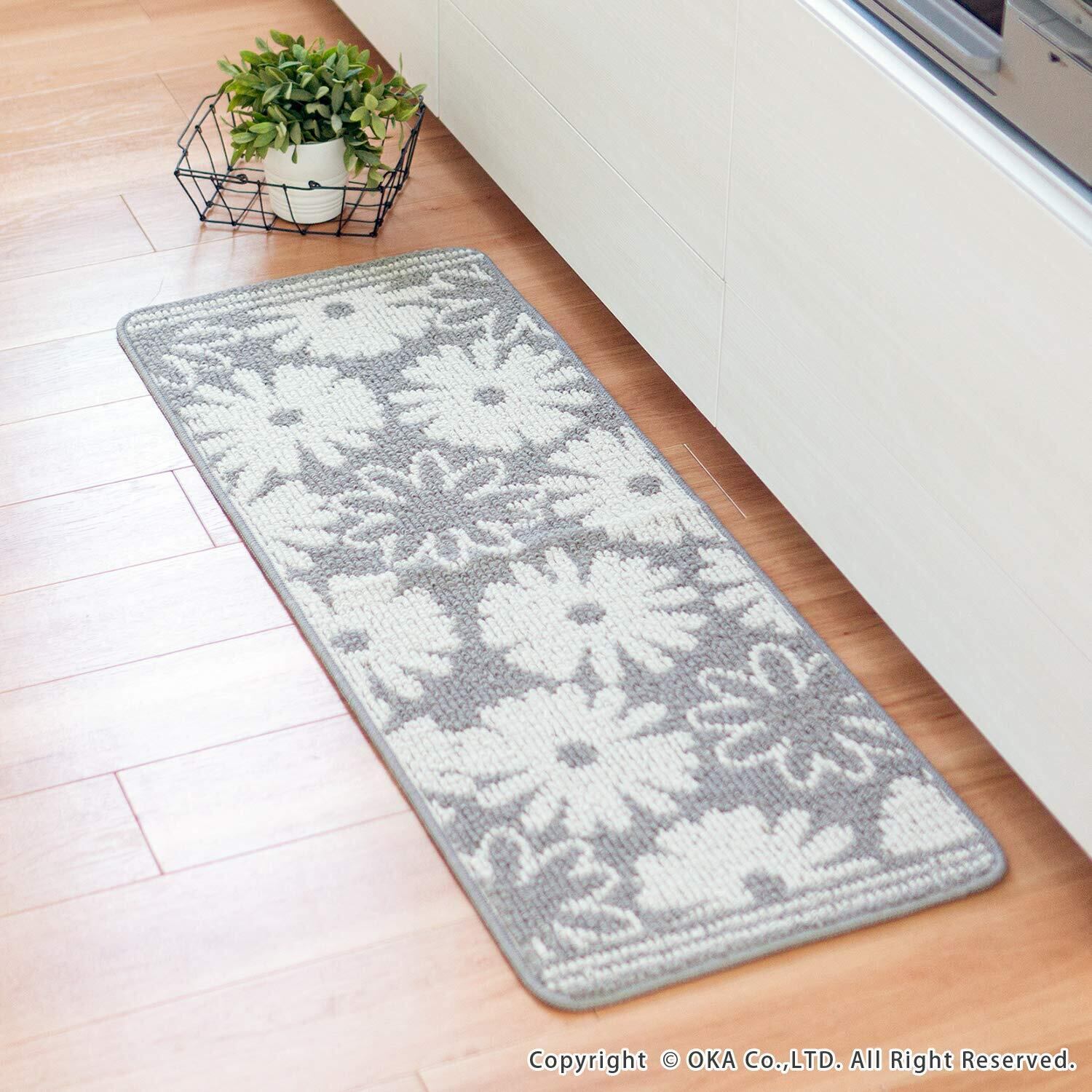 オカ(OKA) シュクレ キッチンマット 約45cm×120cm グレー(すべり止め 洗える)