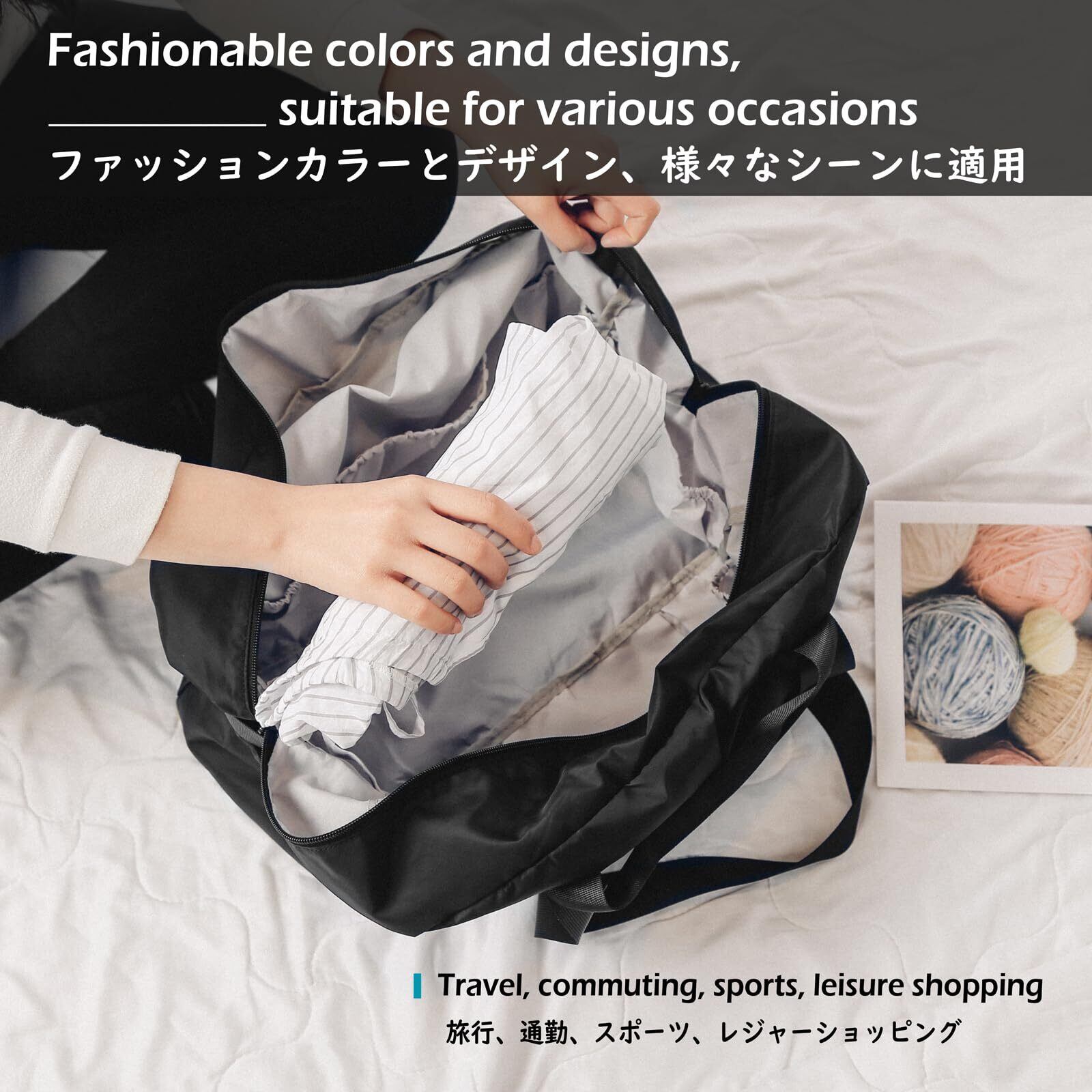 【軽量&大容量】約300gの超軽量設計で、2〜3泊分の荷物を収納可能。メイン収納+スマホ/水筒対応ポケットで整理整頓が楽々。機内持ち込みやLCC利用時にも便利で、旅行バッグに最適