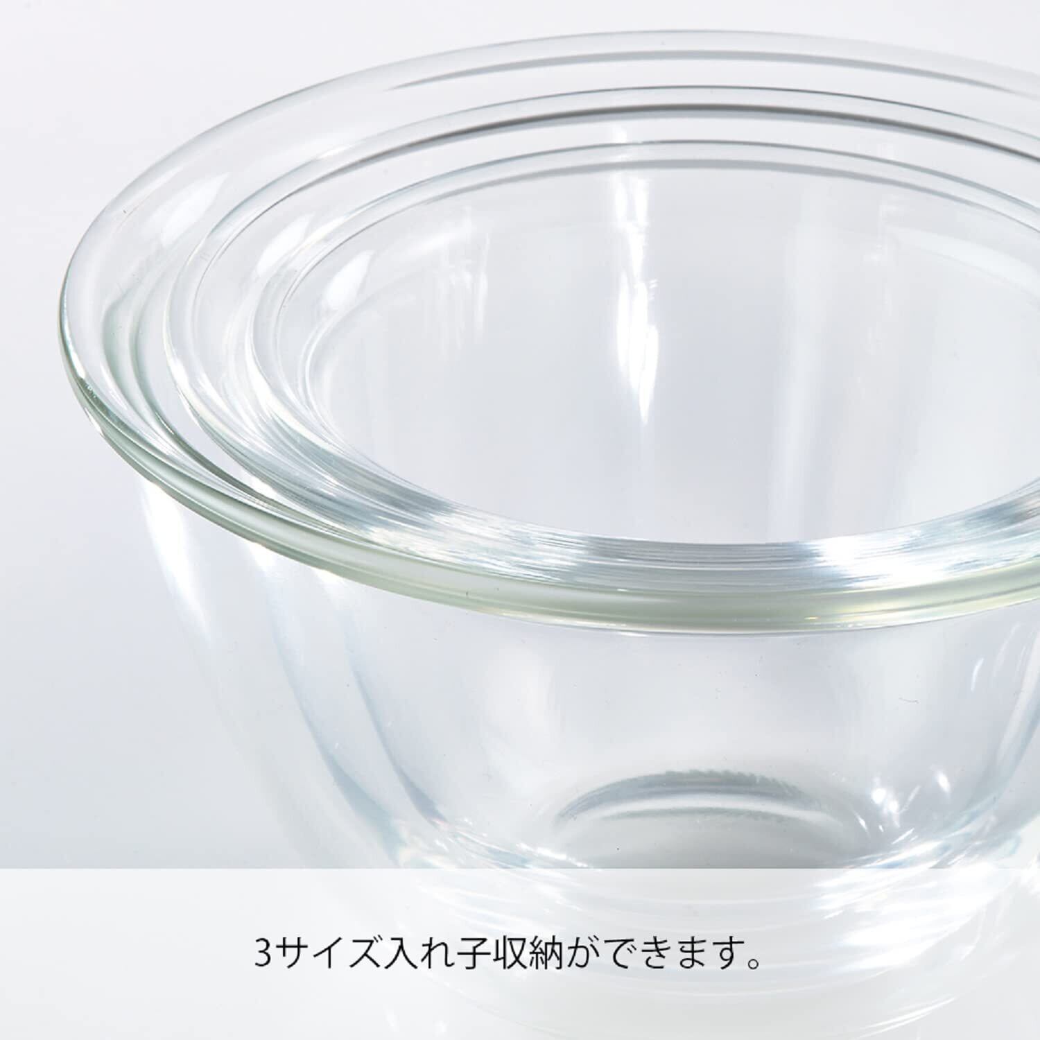 【使いやすさを追求したデザイン!】 : 透明度の高いガラス製で、食材の状態を確認しやすく、混ぜるときの様子も一目瞭然。ボウルの形状は持ちやすく、しっかりとした安定感があるため、料理中の安心感が違います。