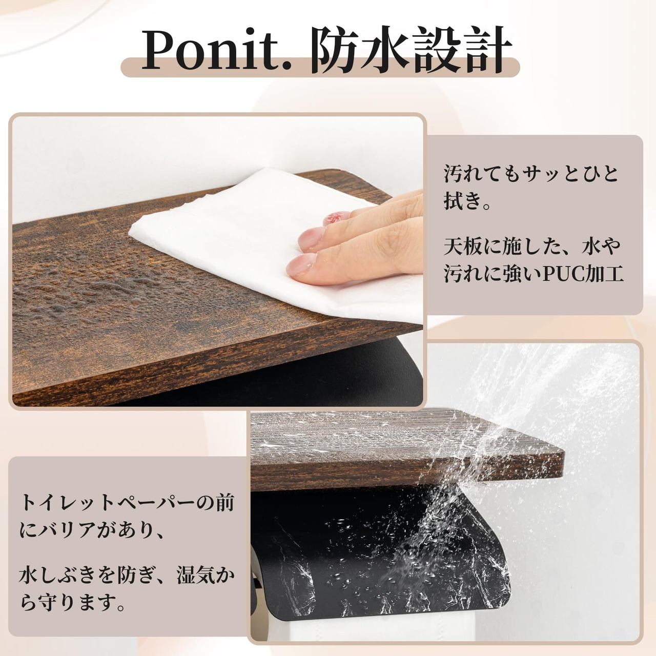 【便利な収納機能!】 : ペーパーホルダーには整理整頓に役立つ飾り棚付き。スマートフォンや小物を置くスペースがあることで、トイレの使い勝手が向上し、快適な空間を提供します。シンプルでありながら高機能なこのアイテムは、実用性とデザインが見事に融合しています。