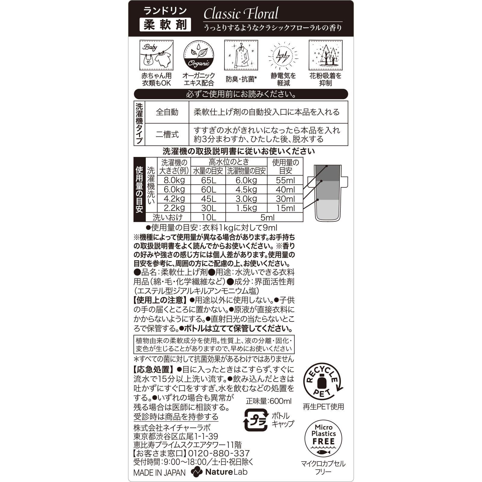 Laundrin'(ランドリン) ネイチャーラボ 柔軟剤 クラシックフローラル 600ml