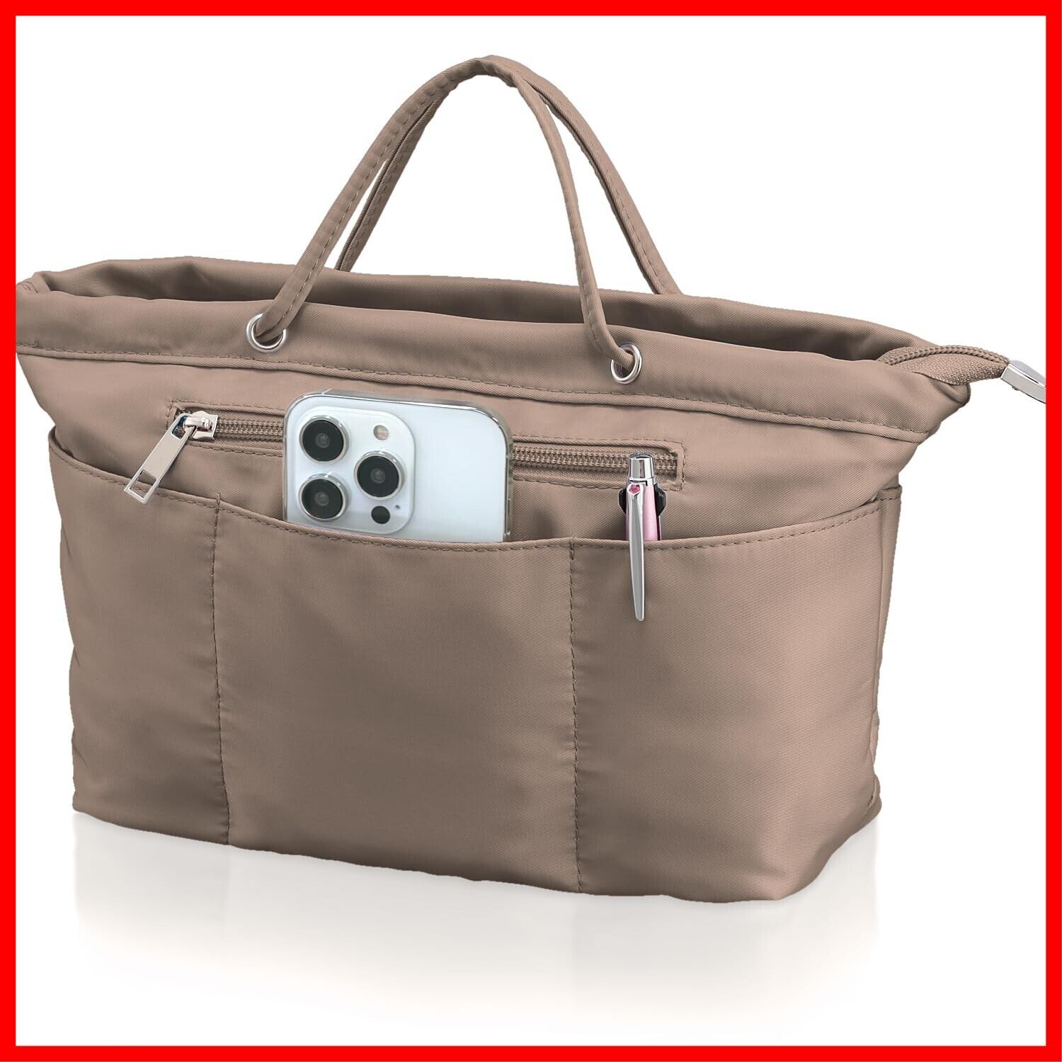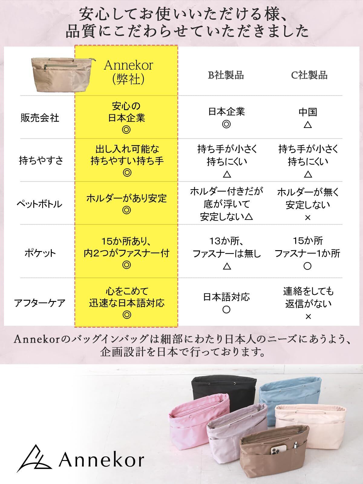 Annekor バッグインバッグ【新機能 とびだす持ち手】 バックインバック インナーバッグ 上質ナイロン 軽量 撥水 ポーチ インナーポーチ レディース メンズ [アンコール](モカ)