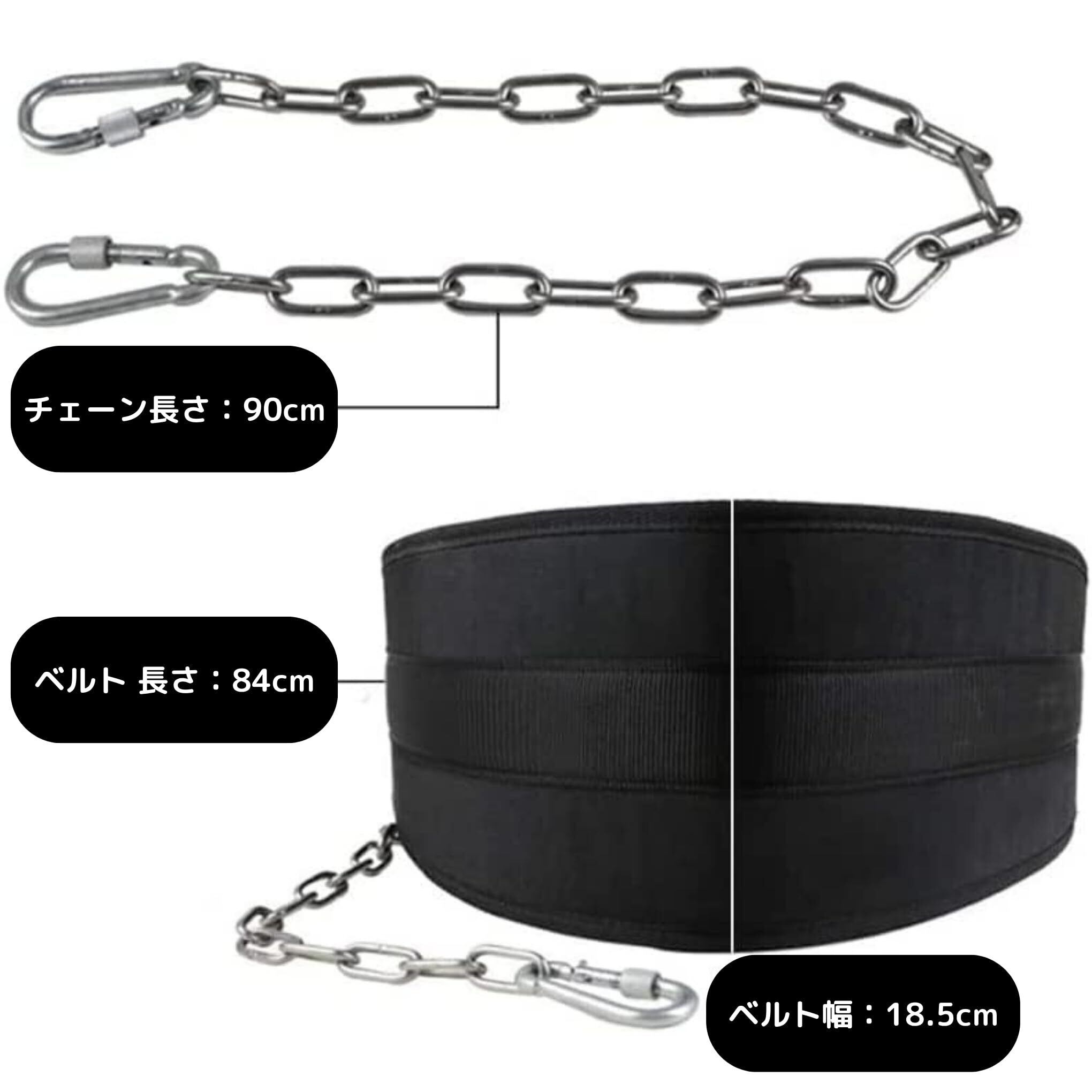 【フリーサイズ】:身長や胴囲によってベルトのサイズを自由に調整できます。重量ウェイトを装着して、自重トレーニングよりもハードなチンニングやディップスが行えます。