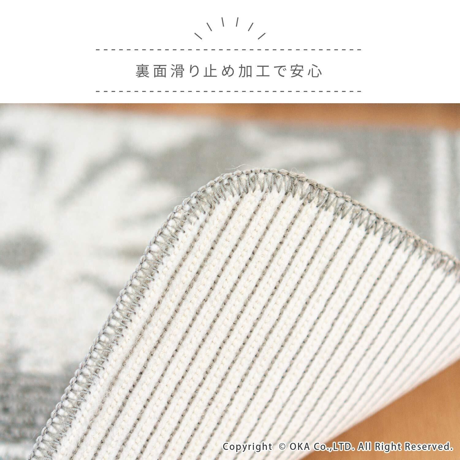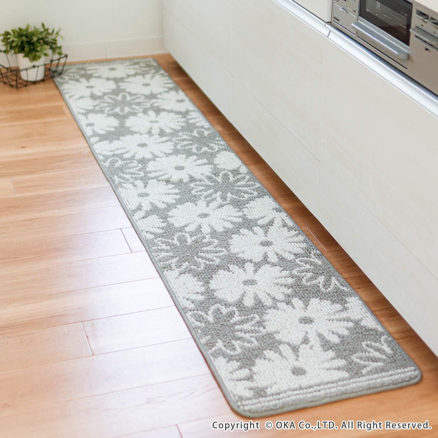 オカ(OKA) シュクレ キッチンマット 約45cm×240cm グレー(すべり止め 洗える)