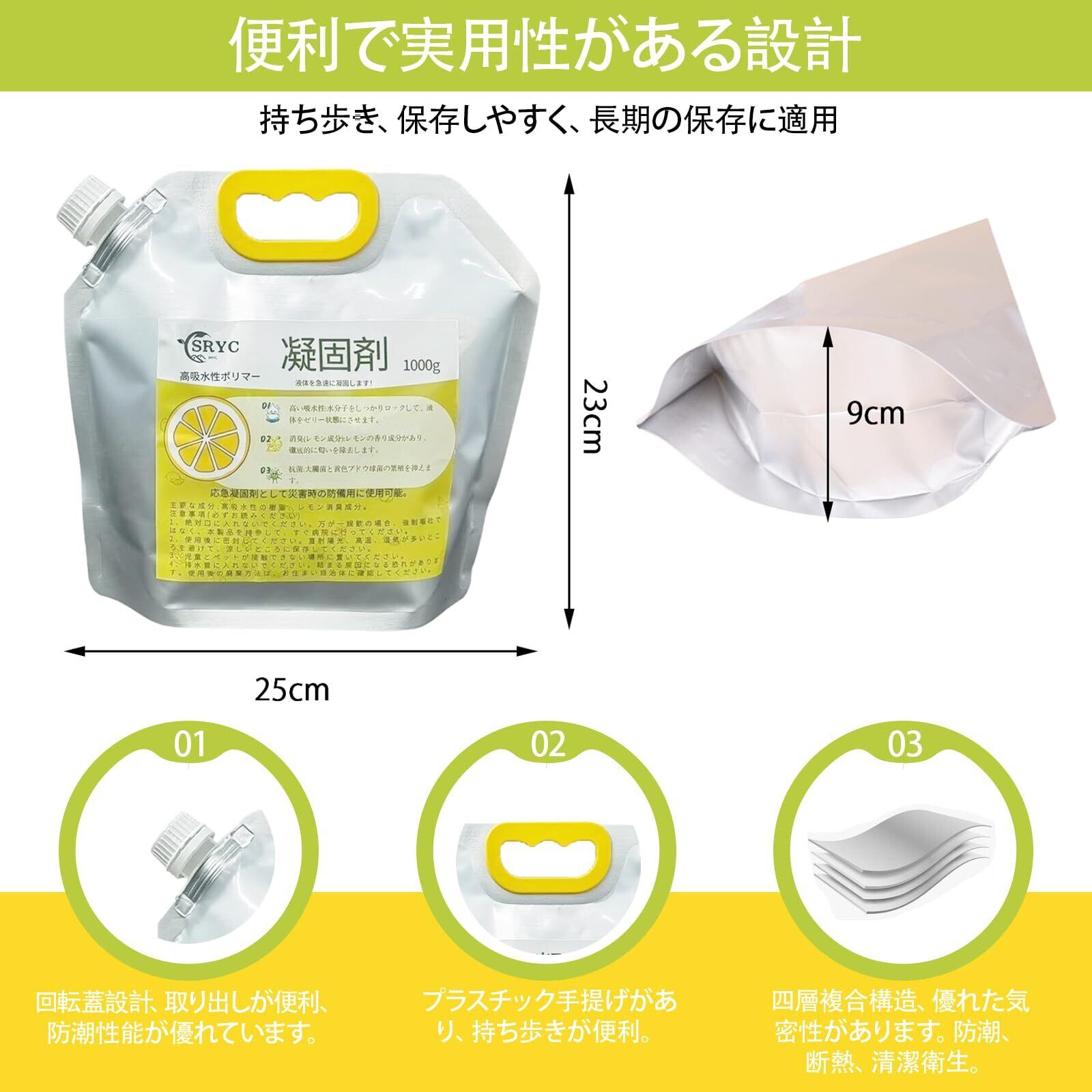 SRYC 凝固剤 凝固剤 高吸水性ポリマー 簡易トイレ 携帯トイレ 非常用 液体を固めて 抗菌 消臭 防災グッズ 防災 災害時 断水時 介護用 アウトドア キッチン排水処理 可燃物として処理 高吸水性樹脂