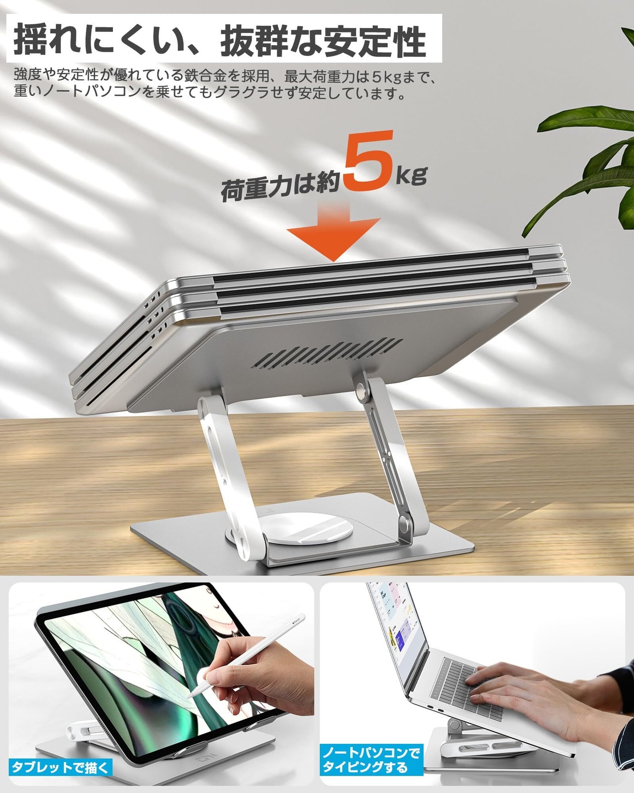 ● 商品名:EPN ノートパソコンスタンド 360°回転式 折りたたみ式 パソコンスタンド 無段階 高さ&角度調整 人間工学 安定性 滑り止め付き