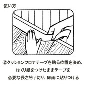 薄手タイプなので貼りあとが目立たず、きれいに貼れる クッションフロアを貼りつけても、テープの厚みを感じさせない優れもの。
