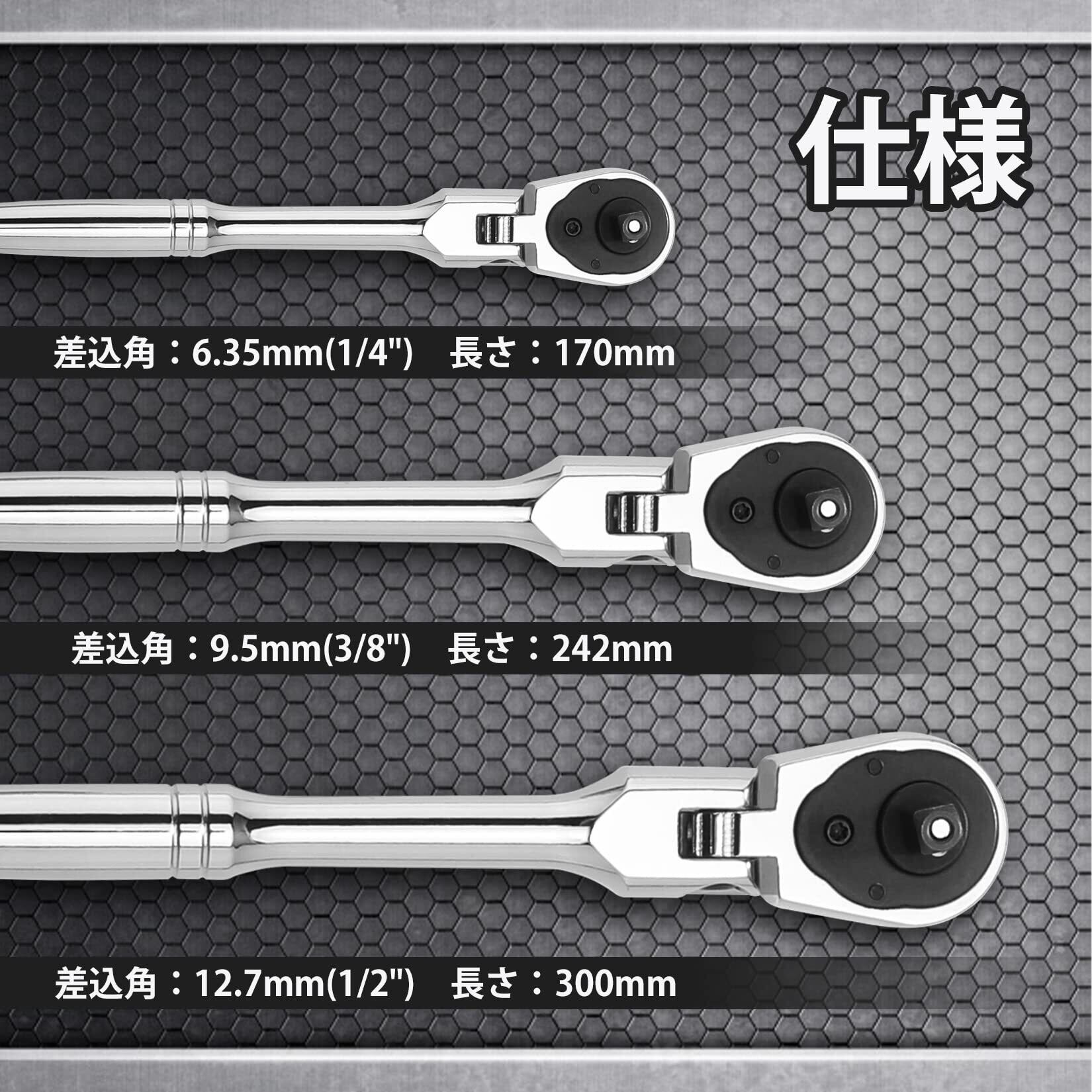【仕様】差込角:9.5mm(3/8")、歯数:72、材質:高品質鋼材
