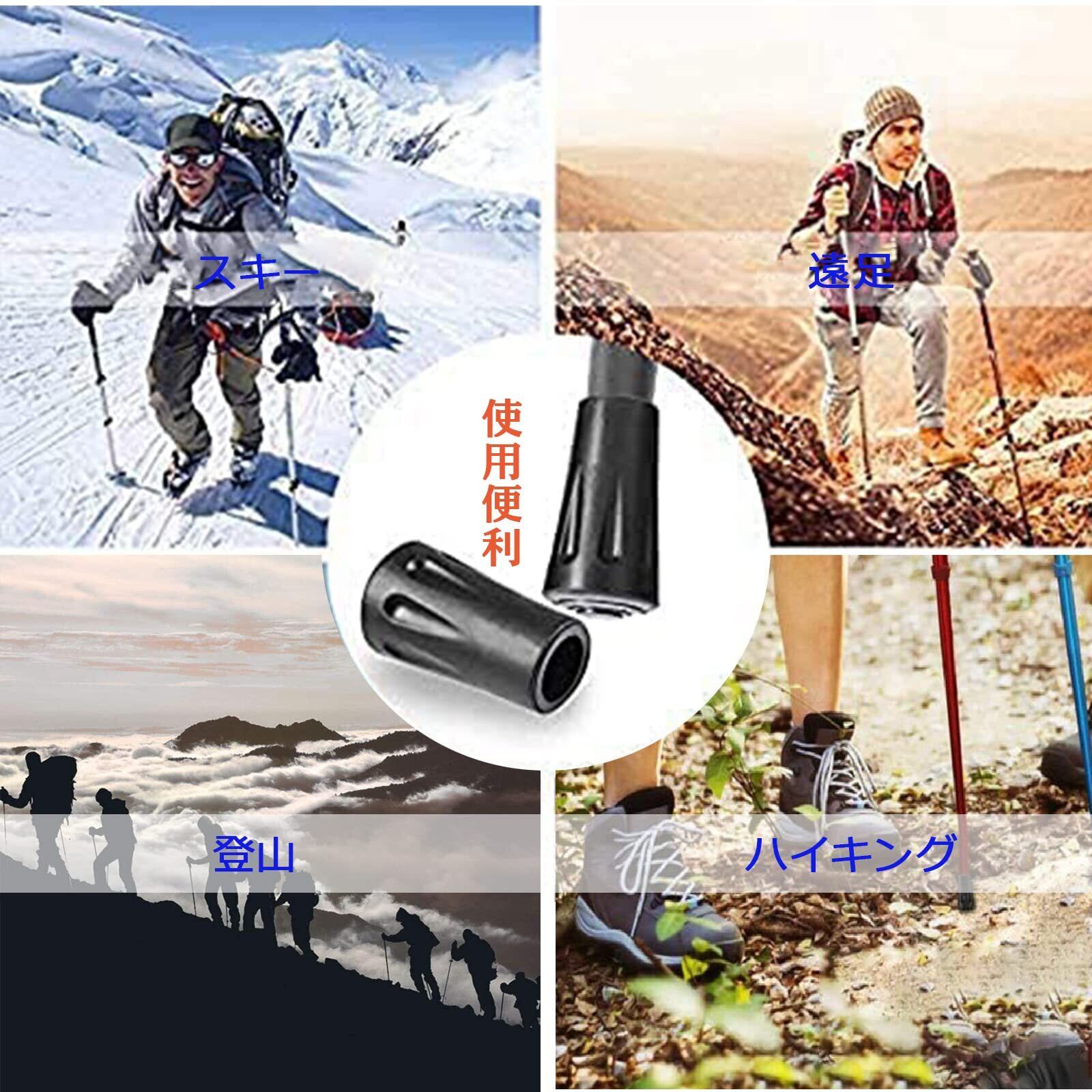 【トレッキングポール保護】 内径11mmでピッタリとしてトレッキングポールに装着でき、紛失しにくいです。ハード面での優れたトラクションを得らえるラバーキャップで、有効にトレッキングポールの金属先端を保護し、トレッキングポールの使用寿命を延ばします。しっかり滑り止め効果を発揮でき、セメント道路、岩だらけの道路、滑りやすい道路、急な道路にも適しております。