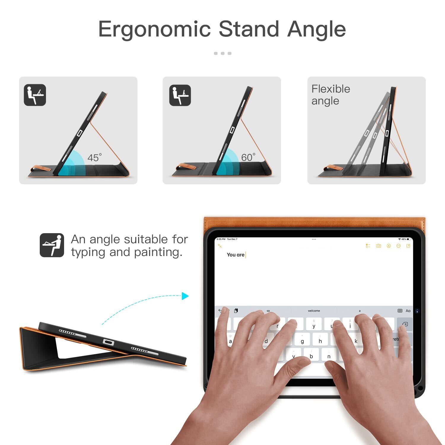【ポケット+マグネットクラスプ設計】バックシェルには柔軟性のあるTPU素材を採用し、iPad本体を取り外しやすいです。マグネットクラスプは落下時のiPadの脱落を防ぐことができ、iPadケースがカバンの中に開いてしまうことを防げます。ポケットは必要最小限の名刺、紙、カードなどを収納できます。