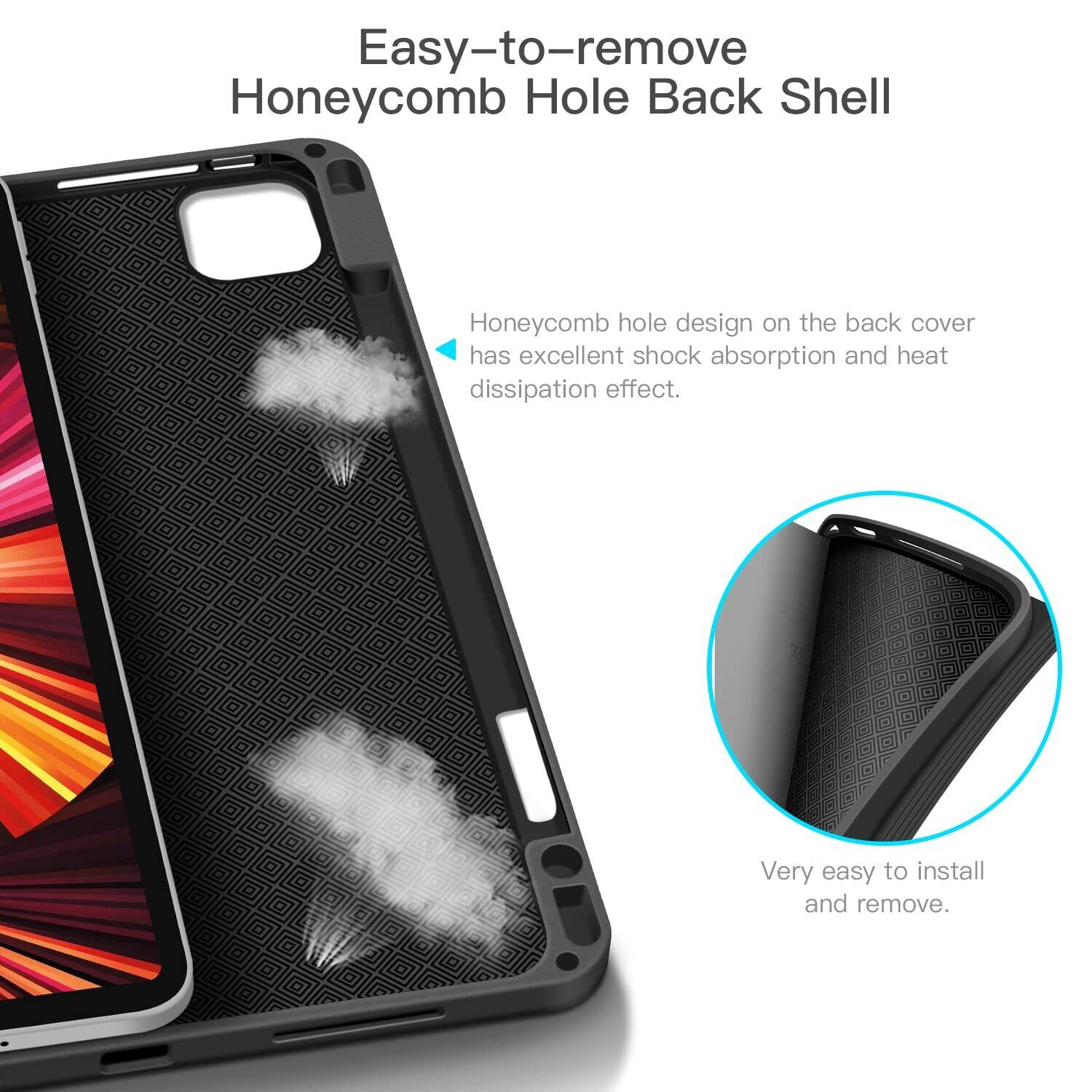 【ペンシル収納/取り出し便利】11インチ iPad Pro用Pencilスロットが内蔵されており、これを使えば、ペンをしっかりと保管し紛失を避けることができます。後ろに穴があり、ペンをワンプッシュで取り出せます。Pencil 2のペアリングとワイヤレス充電に対応できます。ご注意:iPad本体とPencilは含まれておりません。