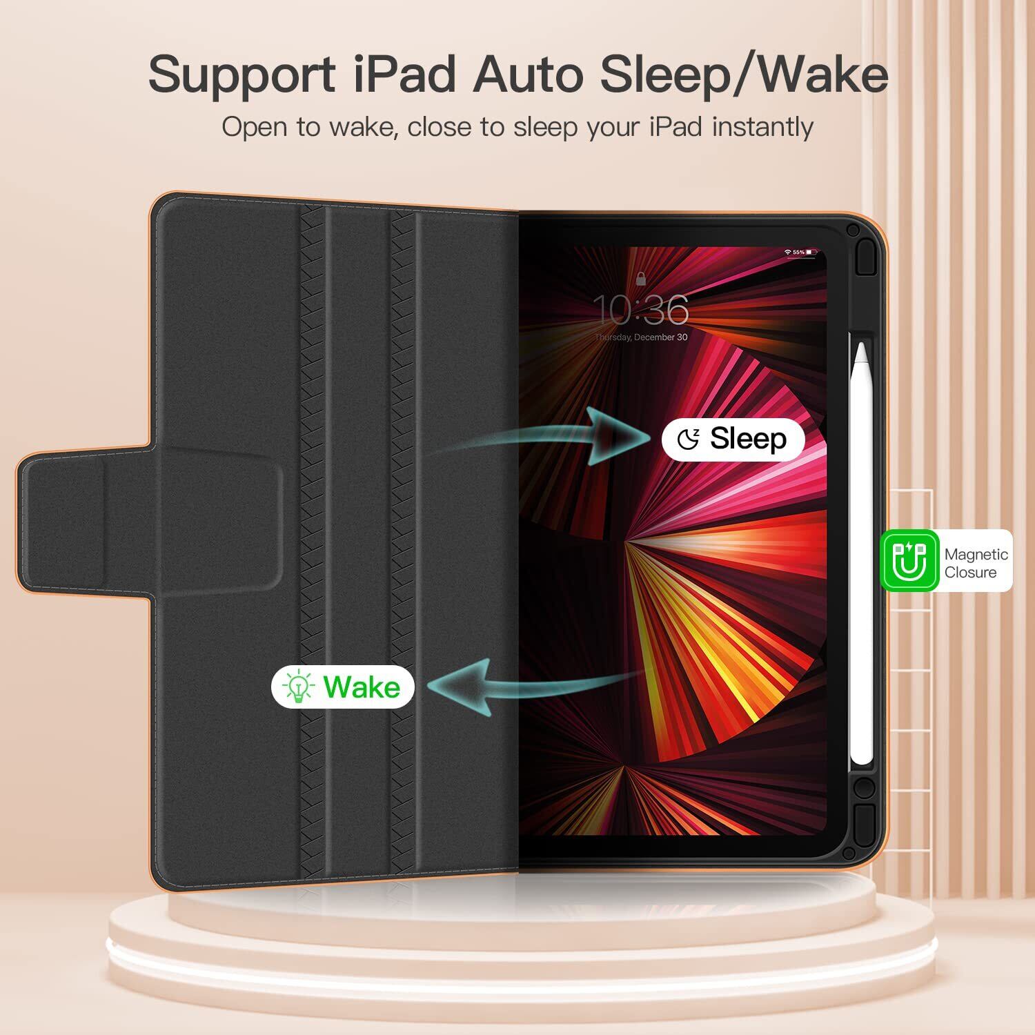 【オートスリープ/ウェーク機能】iPad Pro 11 のオートスリープ・ウェーク機能に対応し、バッテリーの消耗を最小限に抑えることが可能です。