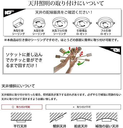 【簡単な取り付け】引掛けシーリング式なので、工事不要で素人にも取り付けられます。ご注意:感電の恐れがありますので、取付・取り外す前に必ず部屋の主電源のブレーキを下がってください!!!※LED電球、白熱電球、電球型蛍光灯使用可。ご注意:傾斜のある天井、傾斜を合わせた舟底天井、凹凸のある天井ではご使用いただけません。必ず平らな天井に取り付けて下さい。