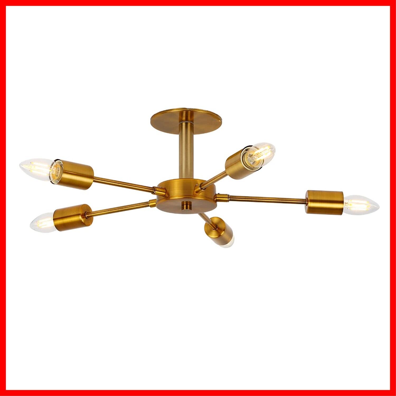 【ゴールド銅色の本体】ペンダントライト5灯は高品質の金属で作られている、高級なゴールド銅色、お値段以上の幸福感をきっともたらしてくれます。サイズ:約50×50×15cm「定格電圧」85-250V「重量」約1.3kg。電球対応:E26(電球は付属しません)日本説明書付き。