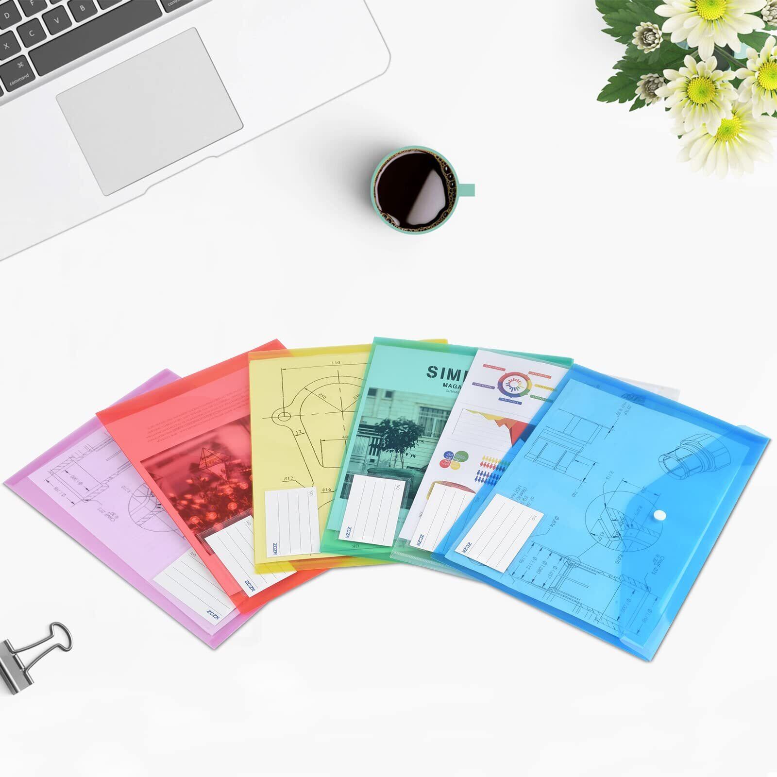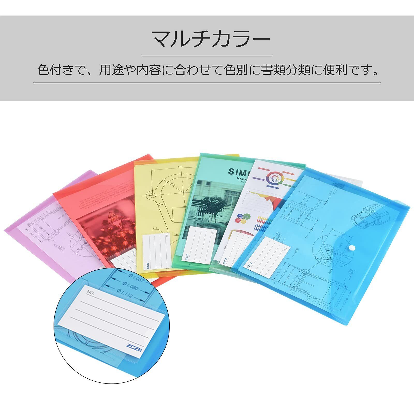 ZCZN ファイルケース ボタン式 クリアファイルバッグ 封筒型クリアホルダー 透明カラー 6色 12枚セット 横型 タグポケット付き A4+A5セット