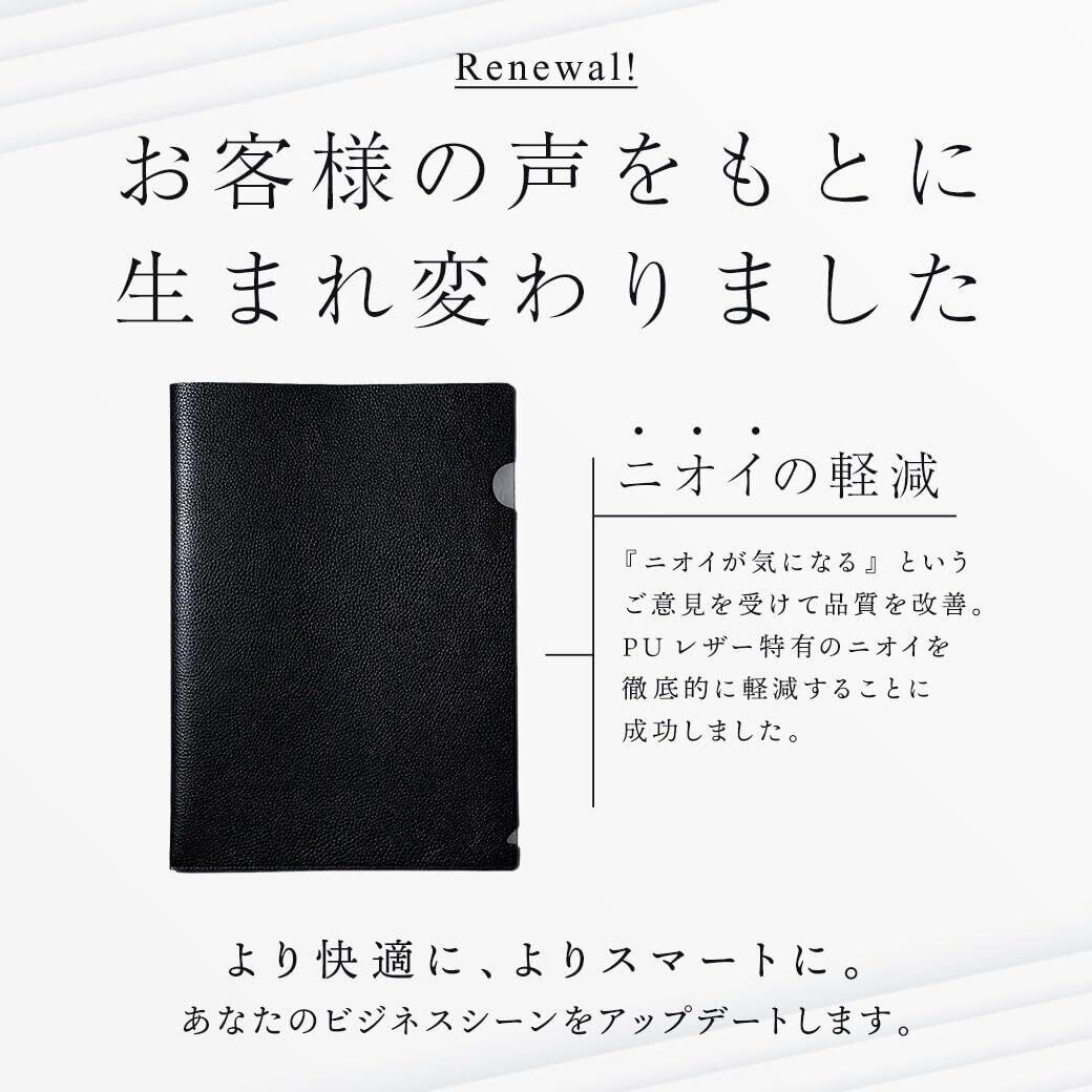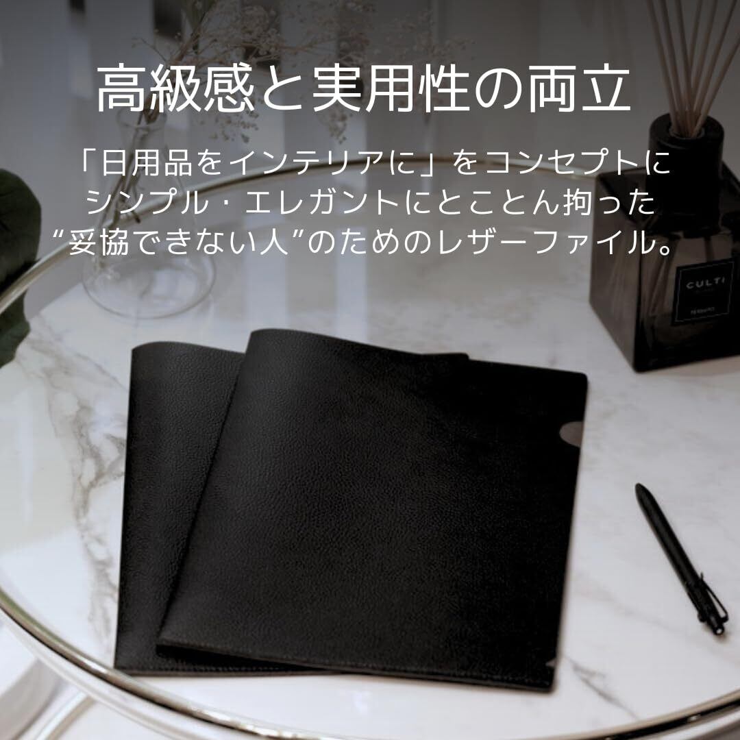 高級 クリアファイル レザー A4 革 書類 ファイルレザーファイル 書類ケース 【 tokyo23:59 】 シボ革 耐水 丨 新生活 丨 デザイン文房具 丨 インテリア雑貨 丨 ビジネス 商談 丨 就活 丨 プレゼント 丨 ドキュメントフォルダ丨 1枚 (ブラック)