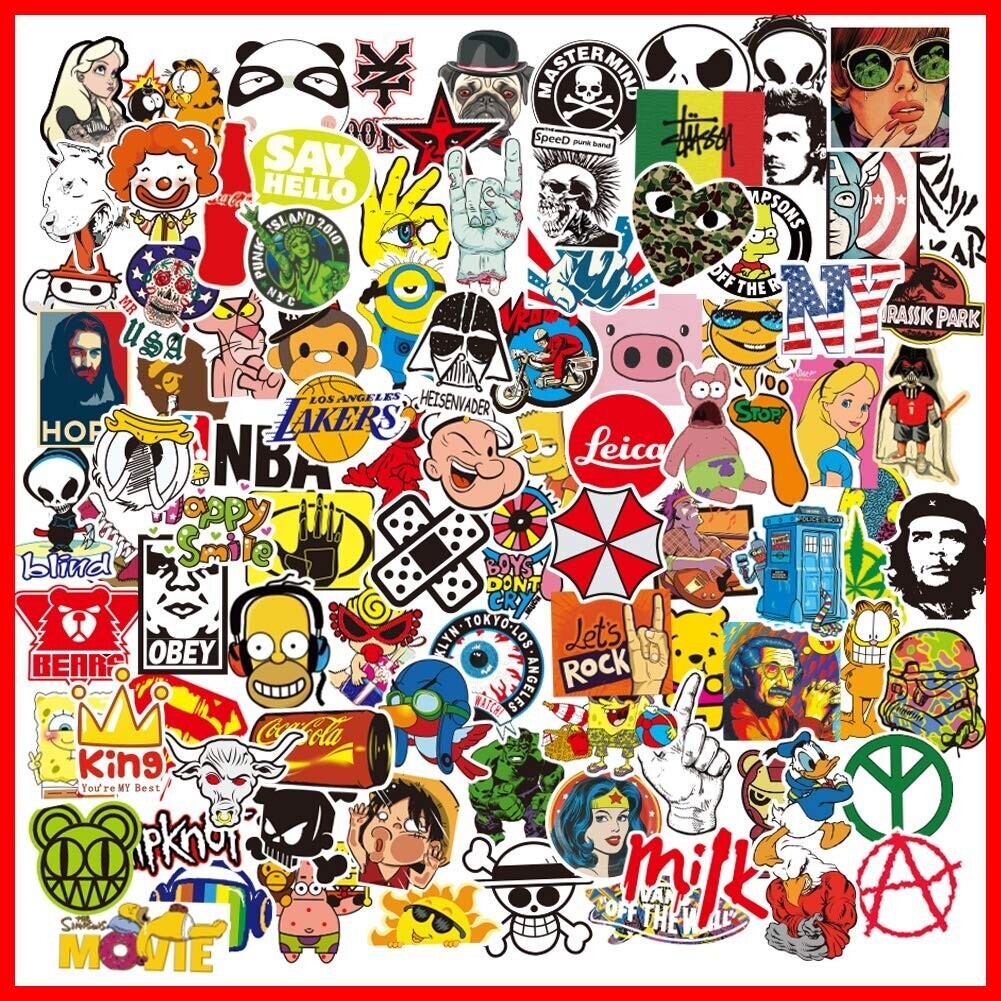 ステッカーセット 100枚 防水ステッカー シールパック ブランドステッカースーツケース 車 バイク ヘルメット スケボー ギターなどに適用 (100C)