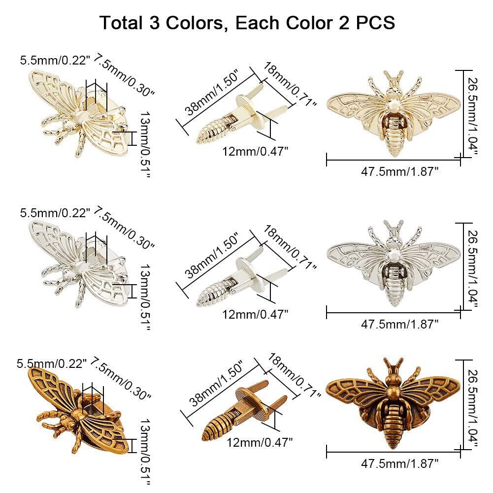 PH PandaHall かばん 差し込み錠 6セット 3色 蜂 バッグ留め具 バッグ 金具 レザーバッグDIY用