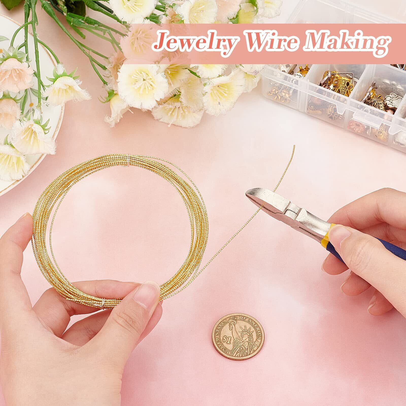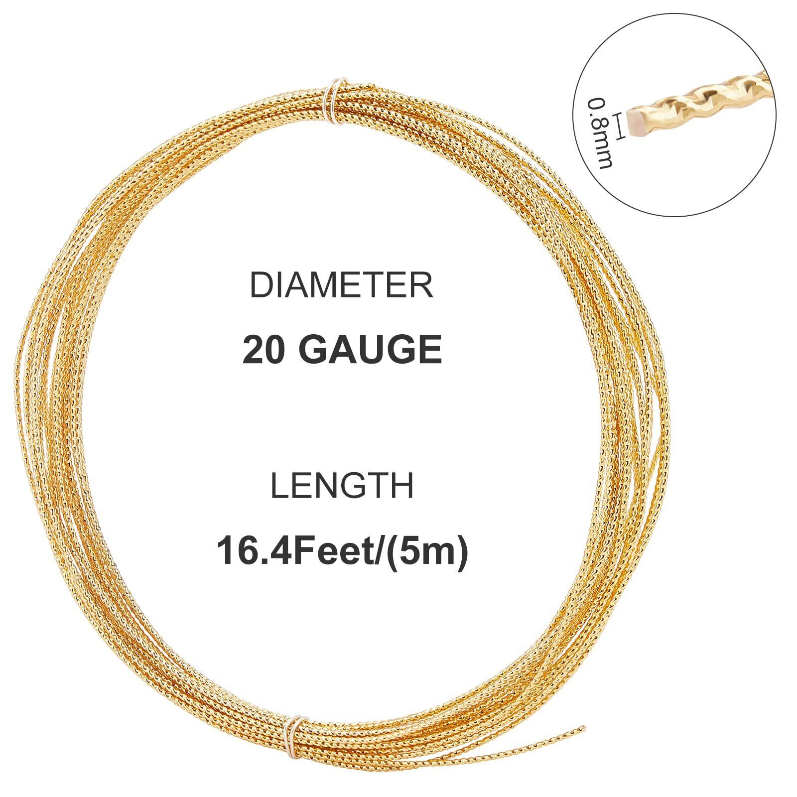 BENECREAT 5m/巻 アクセサリーワイヤー 0.8mm 14Kゴールドフィルド 彫刻撚り線柄 真鍮製 アートワイヤー クラフト銅線 光沢感 ジュエリー作り 手芸素材
