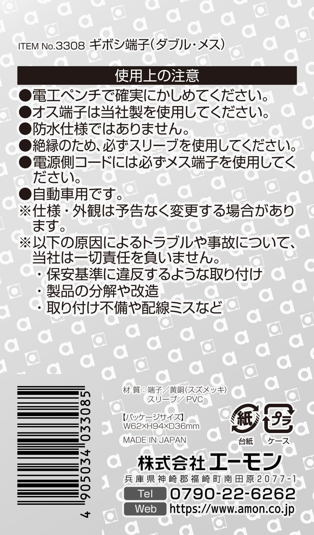 ● 商品名:エーモン(amon) ギボシ端子 メスセット ダブル AV(S)0.5~2sq 10個入 3308