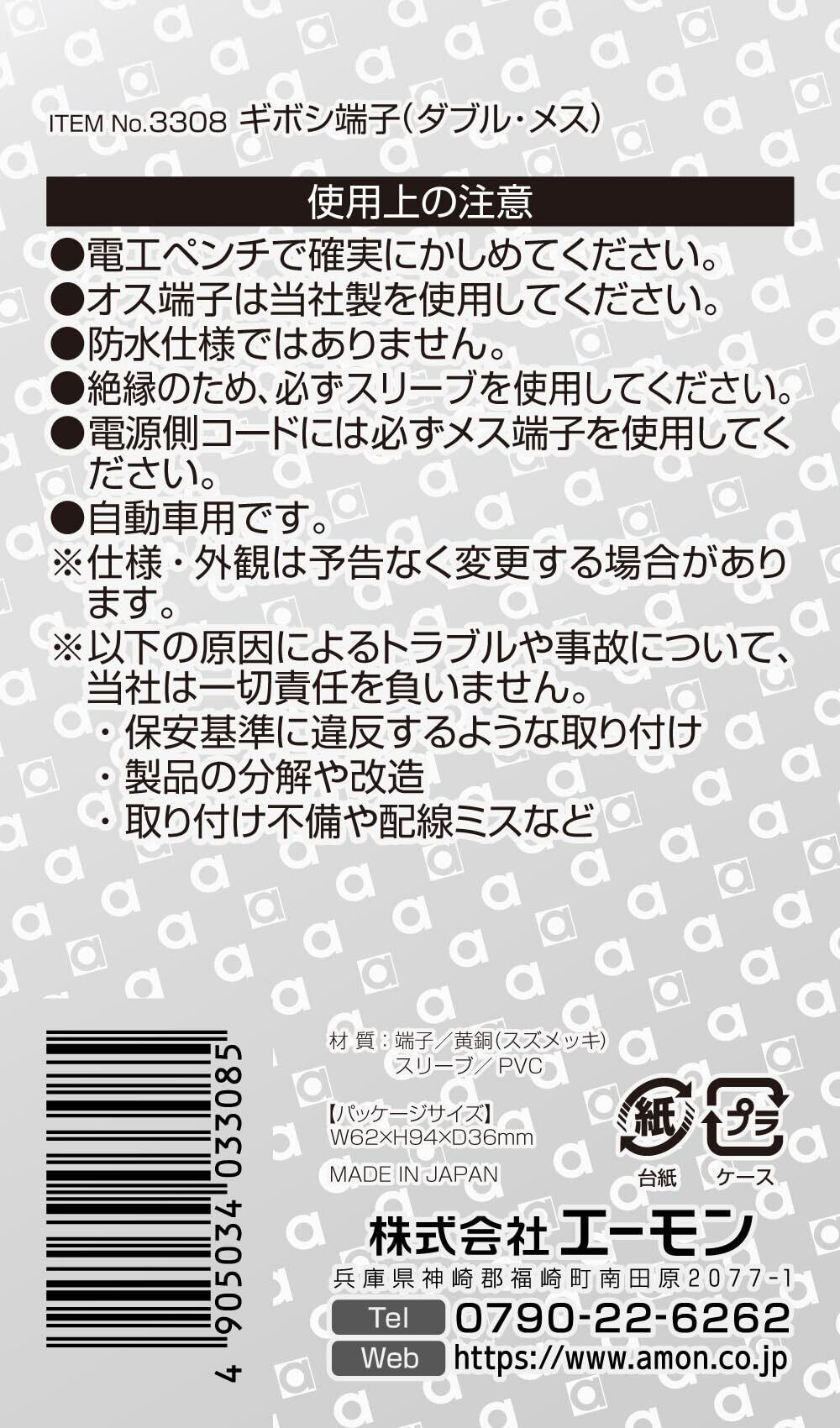 エーモン(amon) ギボシ端子 メスセット ダブル AV(S)0.5~2sq 10個入 3308