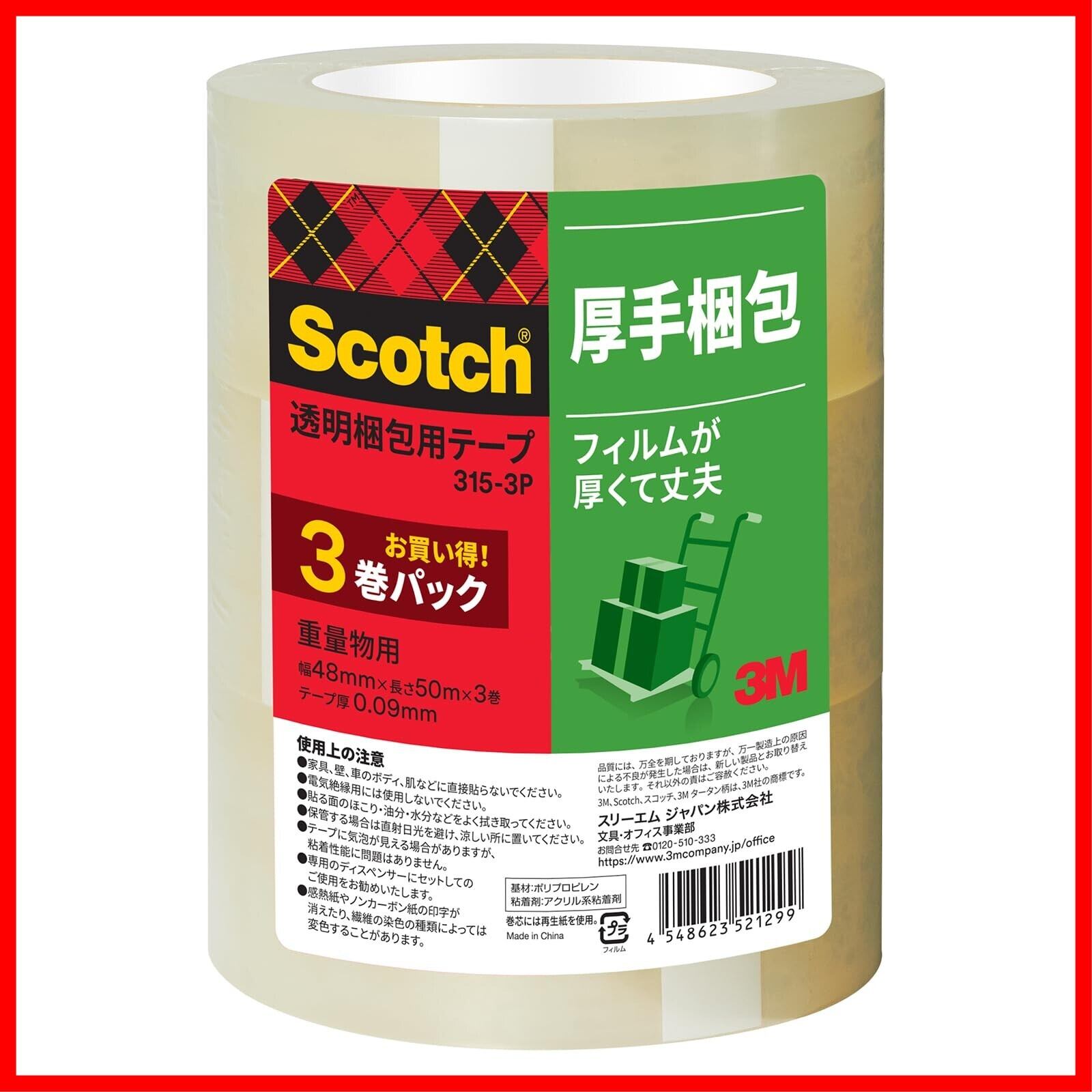 3M スコッチ ガムテープ 梱包テープ 重量用 48mm×50m 3巻パック 315-3P テープの色:透明