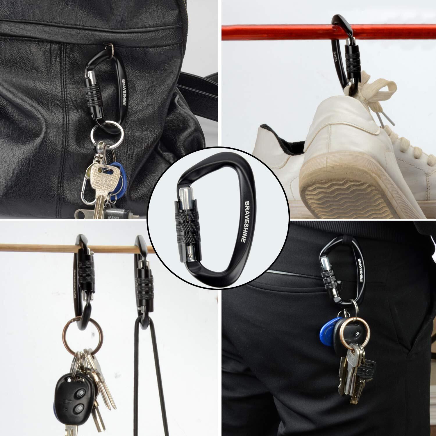 カラビナ 12KN オートロック式 BRAVESHINE 耐荷重1200kg ロックカラビナ Dリング 軽量 ハンモック タープ キャンプ用 荷物のフック 犬のリード用 多機能 2個セット | hananoki