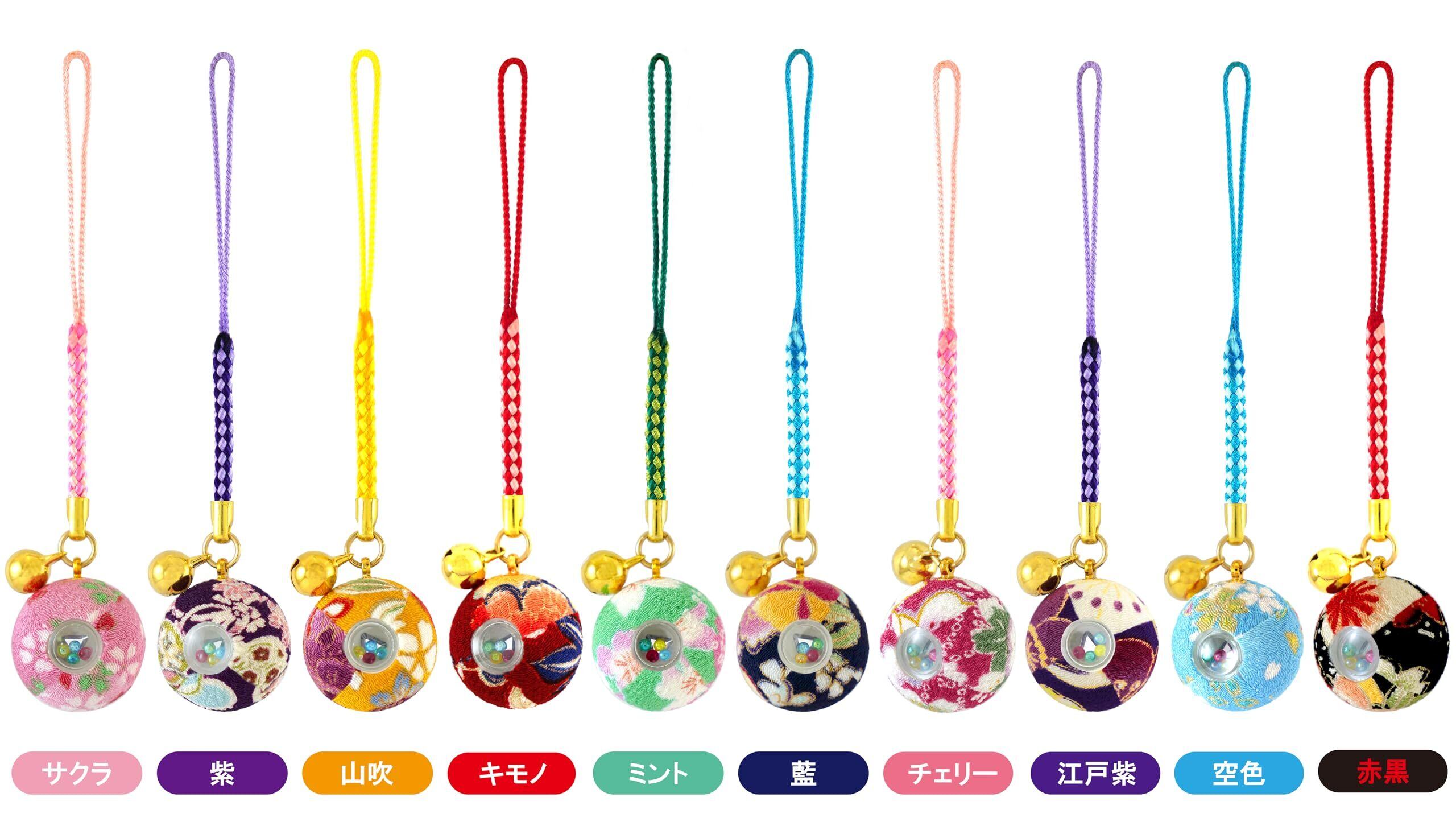 美しい和柄の布で包んだ小さな万華鏡のチャーム。万華鏡(球体)の穴をのぞけばカラフルなガラス玉が光に反射して癒されます!! ※球体を動かしたり、コツコツ叩くとガラス玉が動いてより綺麗です。