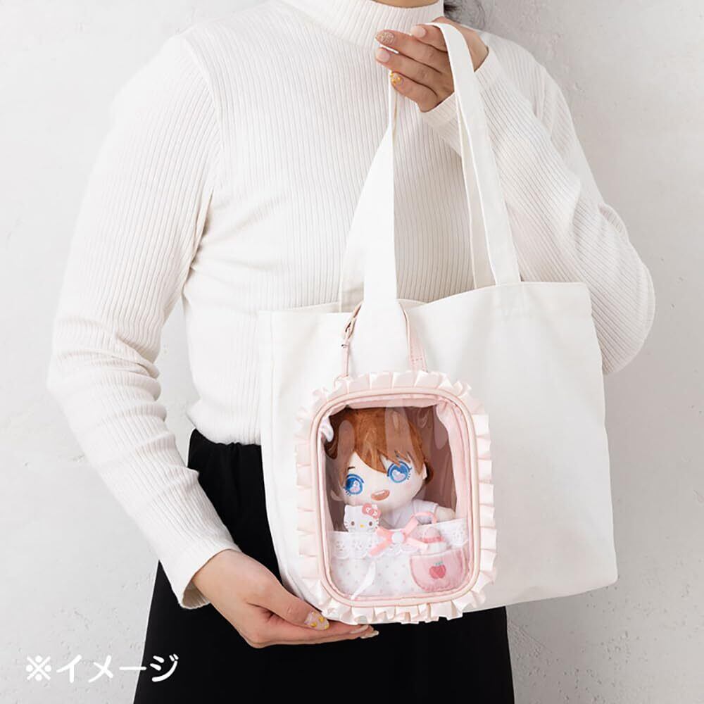 本体サイズ:約幅14×奥行8.5×高さ18cm(※フリル部分含む)ストラップの長さ:約16cm。主な材料・原料:ポリエステル、PVC