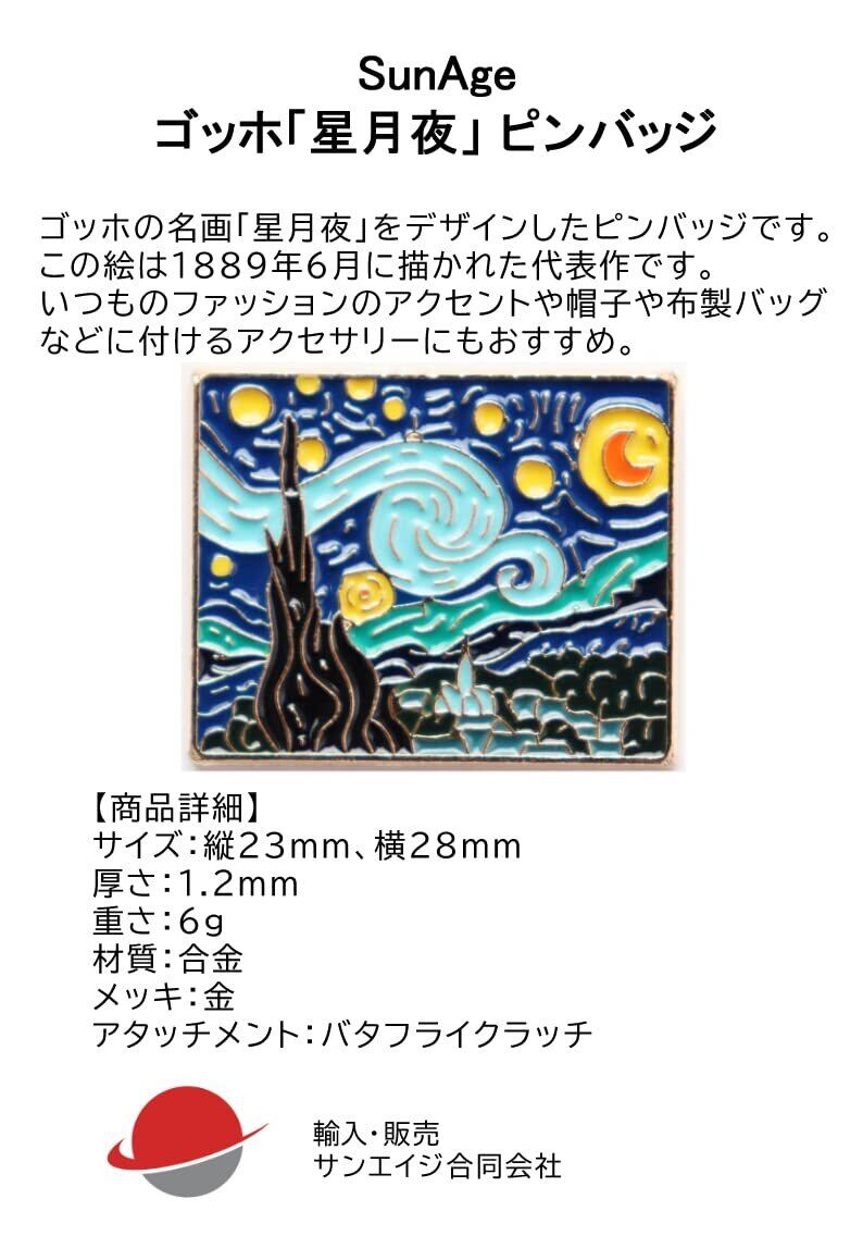 ゴッホの代表作である絵画「星月夜」をデザインした素敵なピンバッジ(ピンズ)です。
