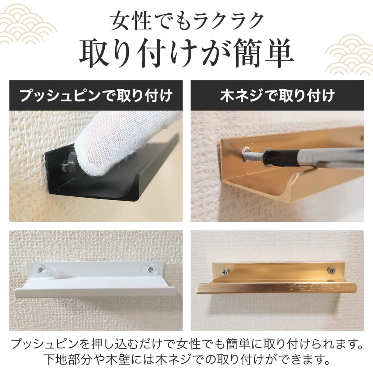 【壁を傷つけずに簡単取り付け!】 : このシェルフは賃貸でも安心の取り付け方で、壁を傷つけることなく設置できます。賃貸生活でも心配せず、自分だけの神棚を作り上げることができるのは嬉しいポイントです。取り付けも簡単で便利さは抜群です!