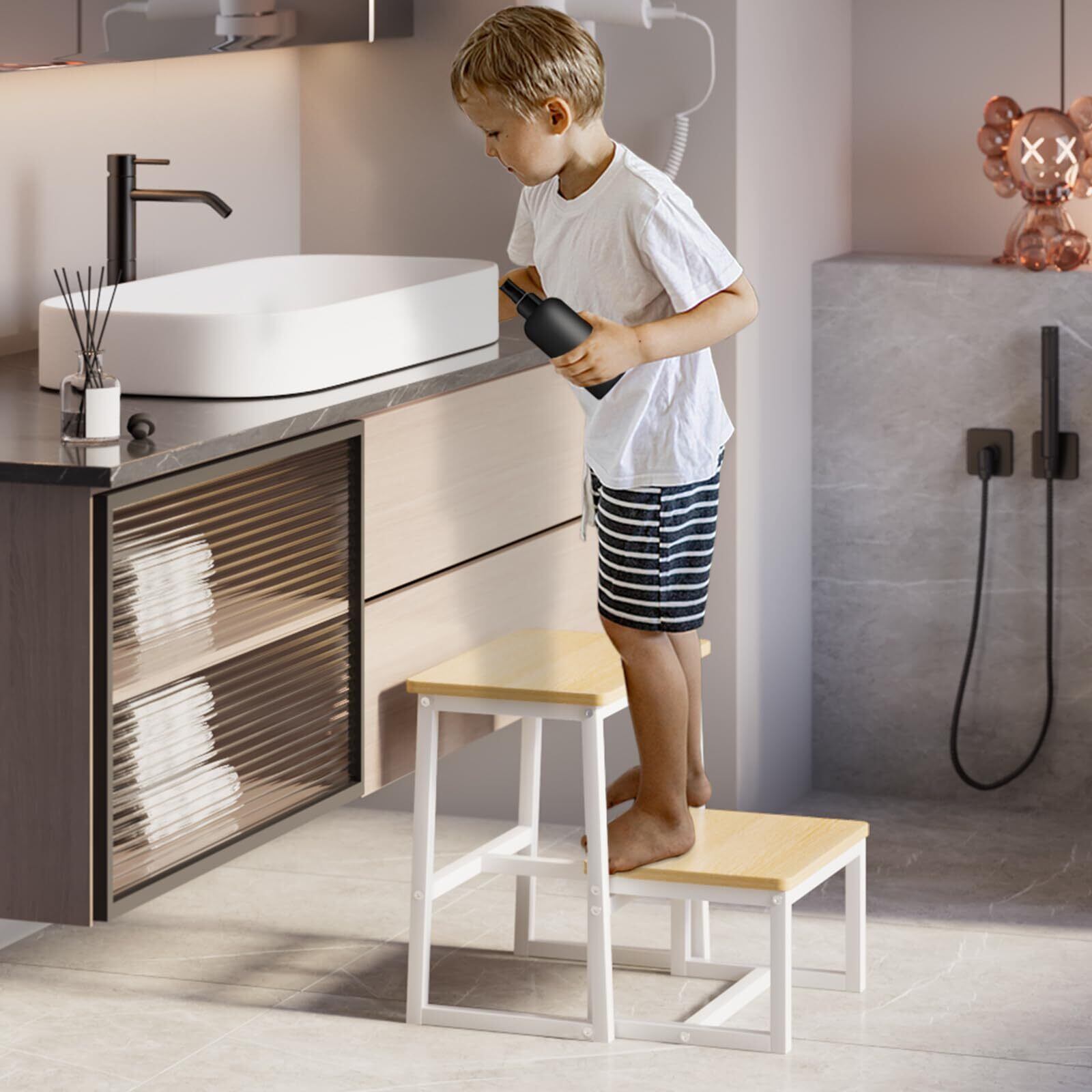 【丈夫で耐久性に優れた踏み台】身長の高い踏み台も低い踏み台も250KGまで耐荷重があります。上質な木材(mdf)と金属フレームで作られ、強化されたクロスバーがデザインしてスツールをより強く安定してになります。