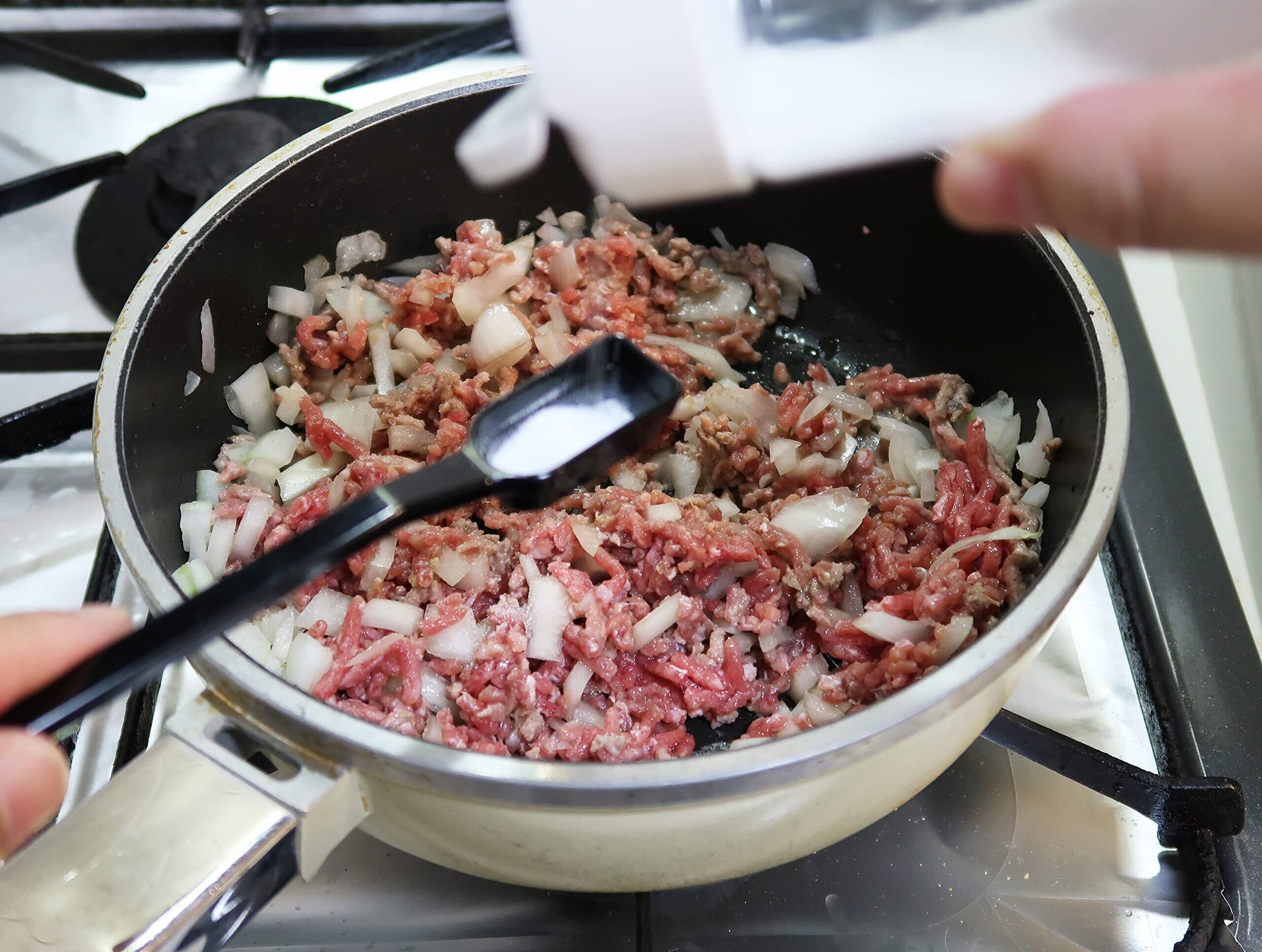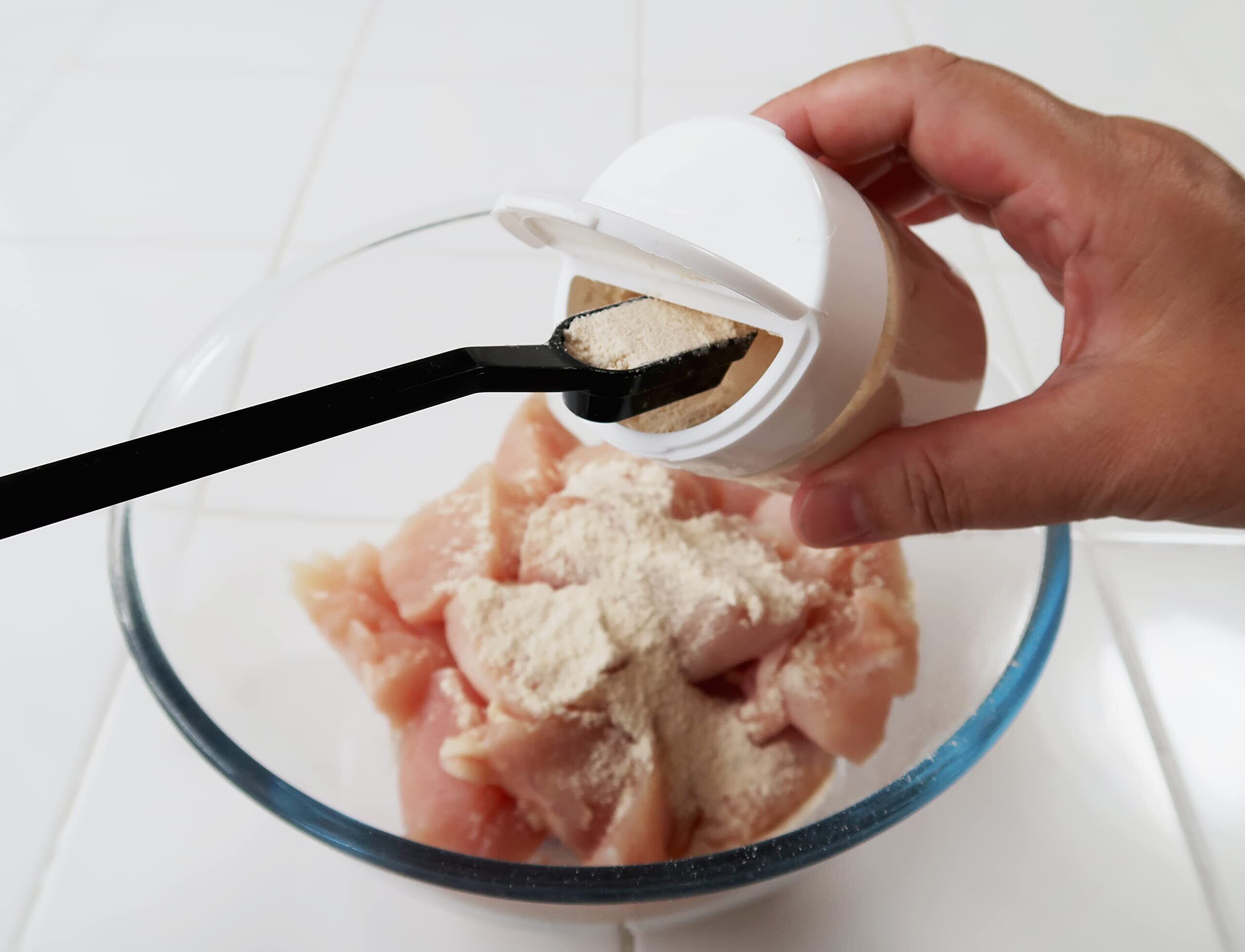 【測りやすいデザイン】ありそうでなかったシンプルかつ斬新なデザインが特徴。深底や口の狭い容器の調味料もすくって量りやすく、細長いのでケースや袋入りの粉ものの計量もスムーズにに行えます。四角い形状で、容器のスミまですくいやすい。