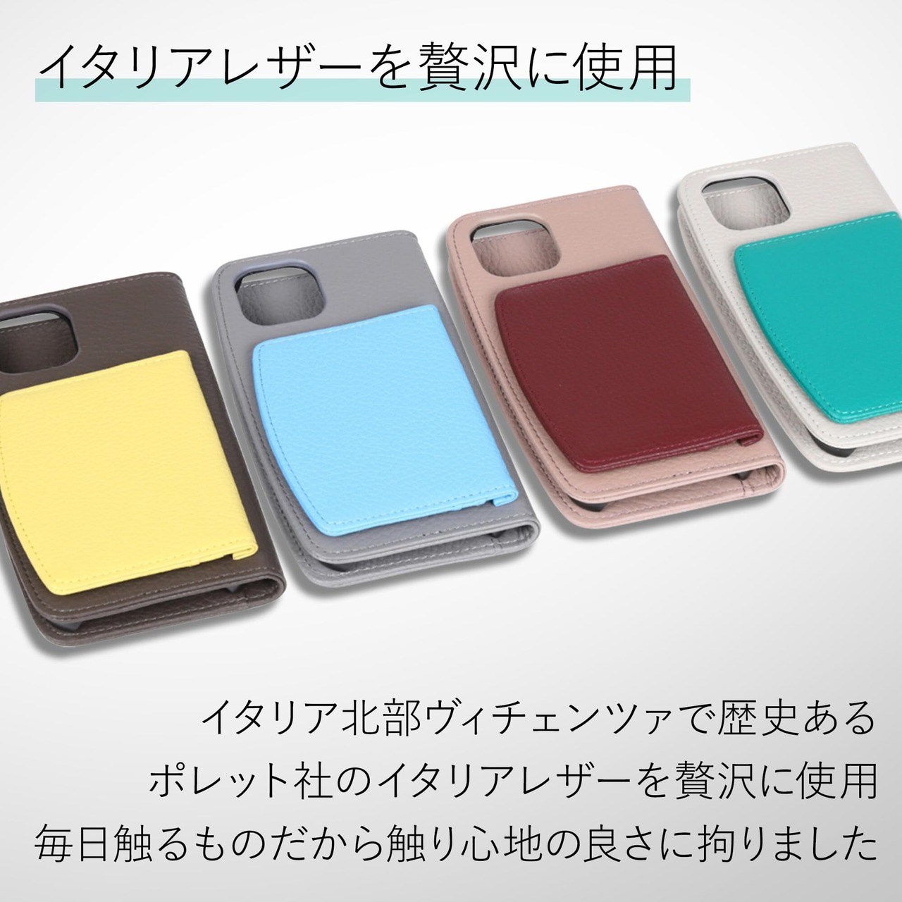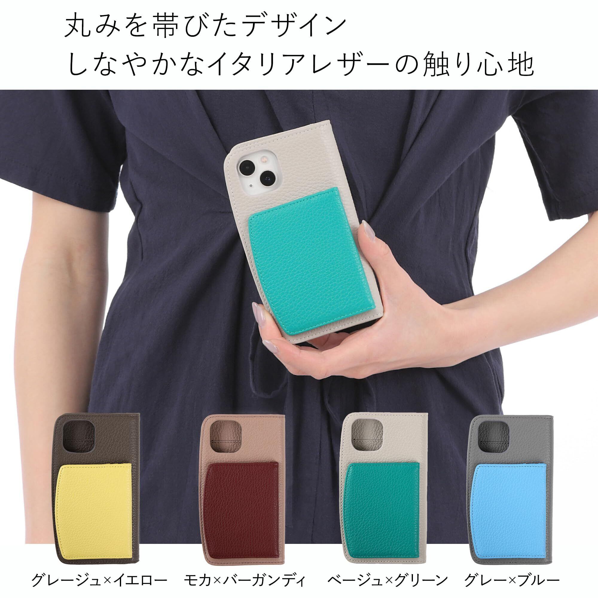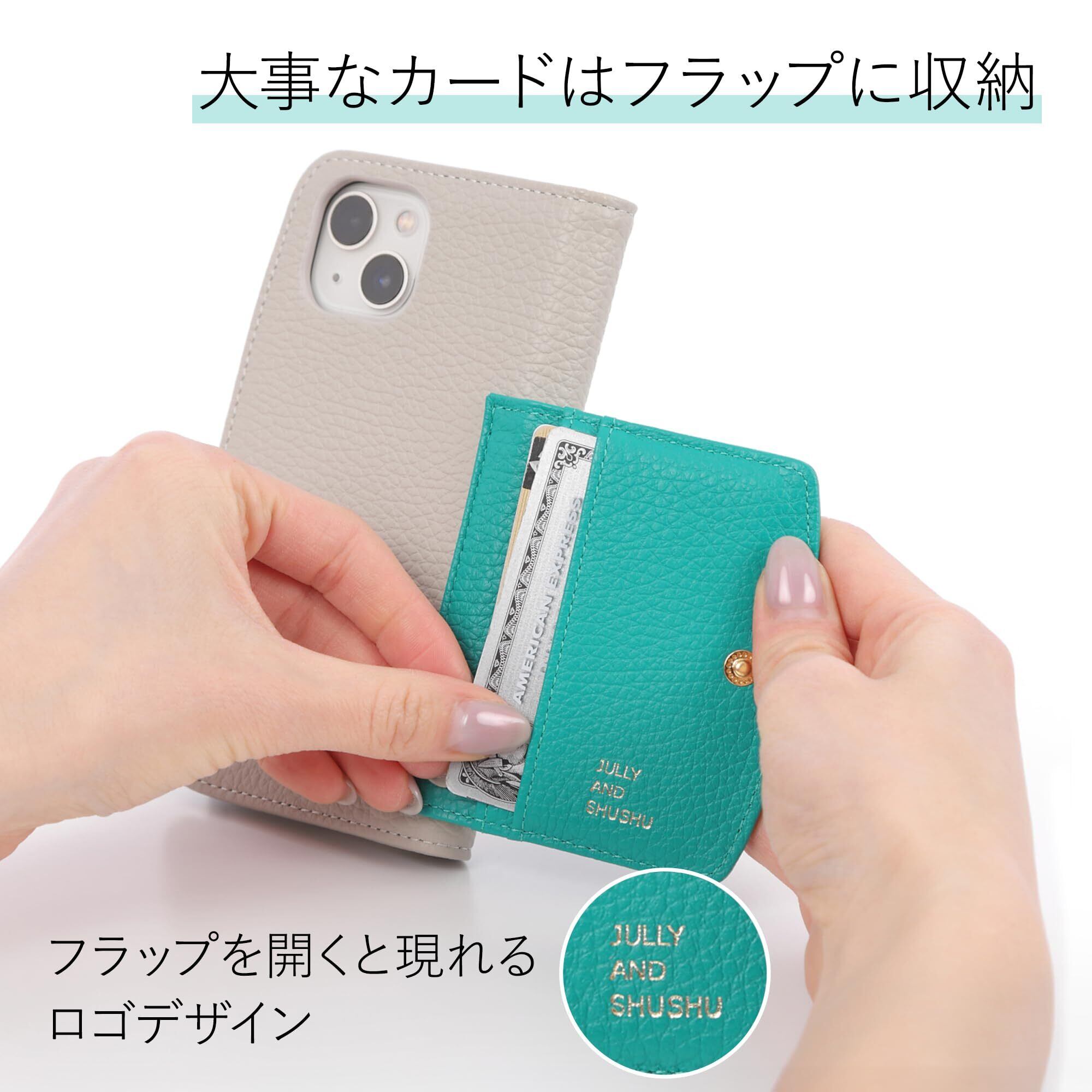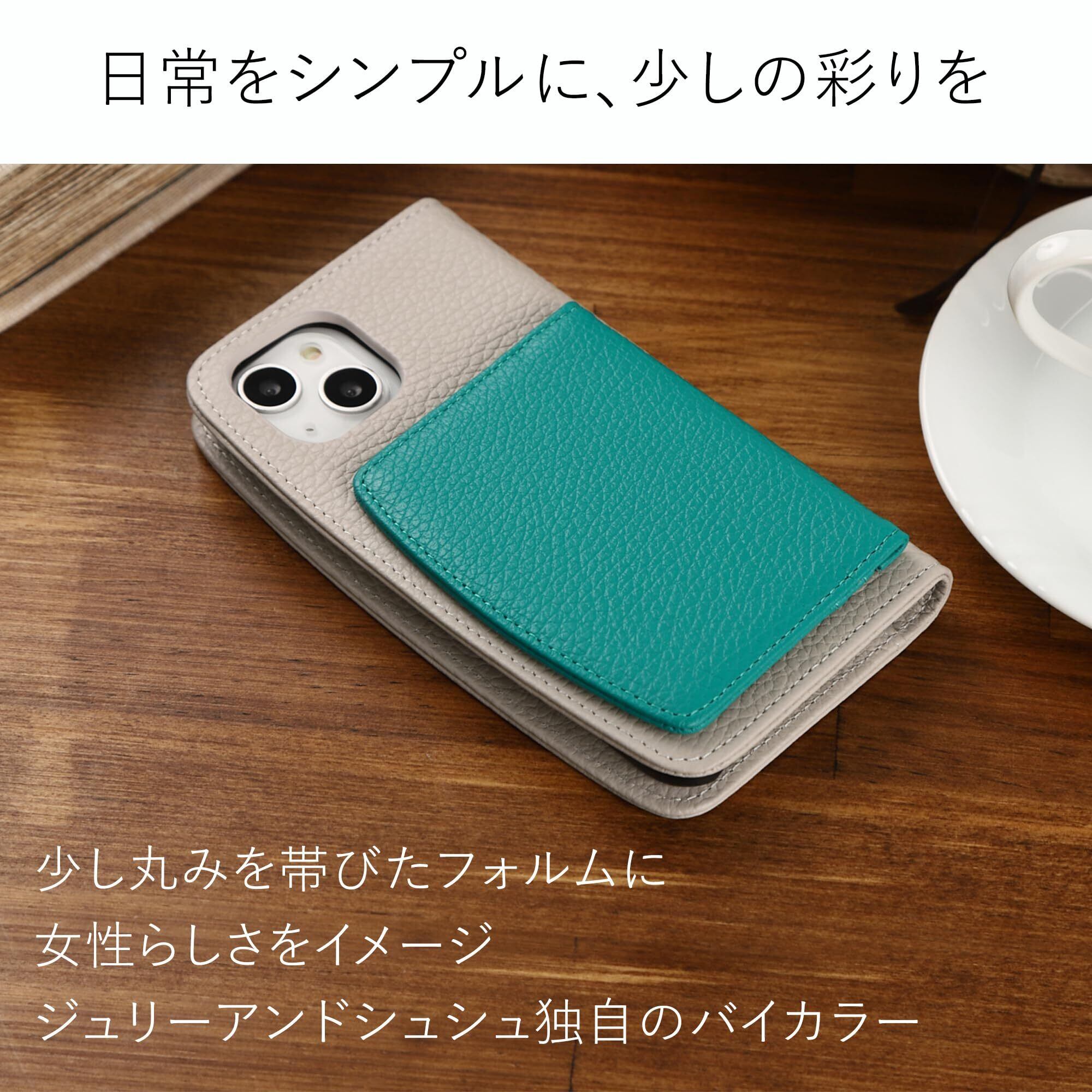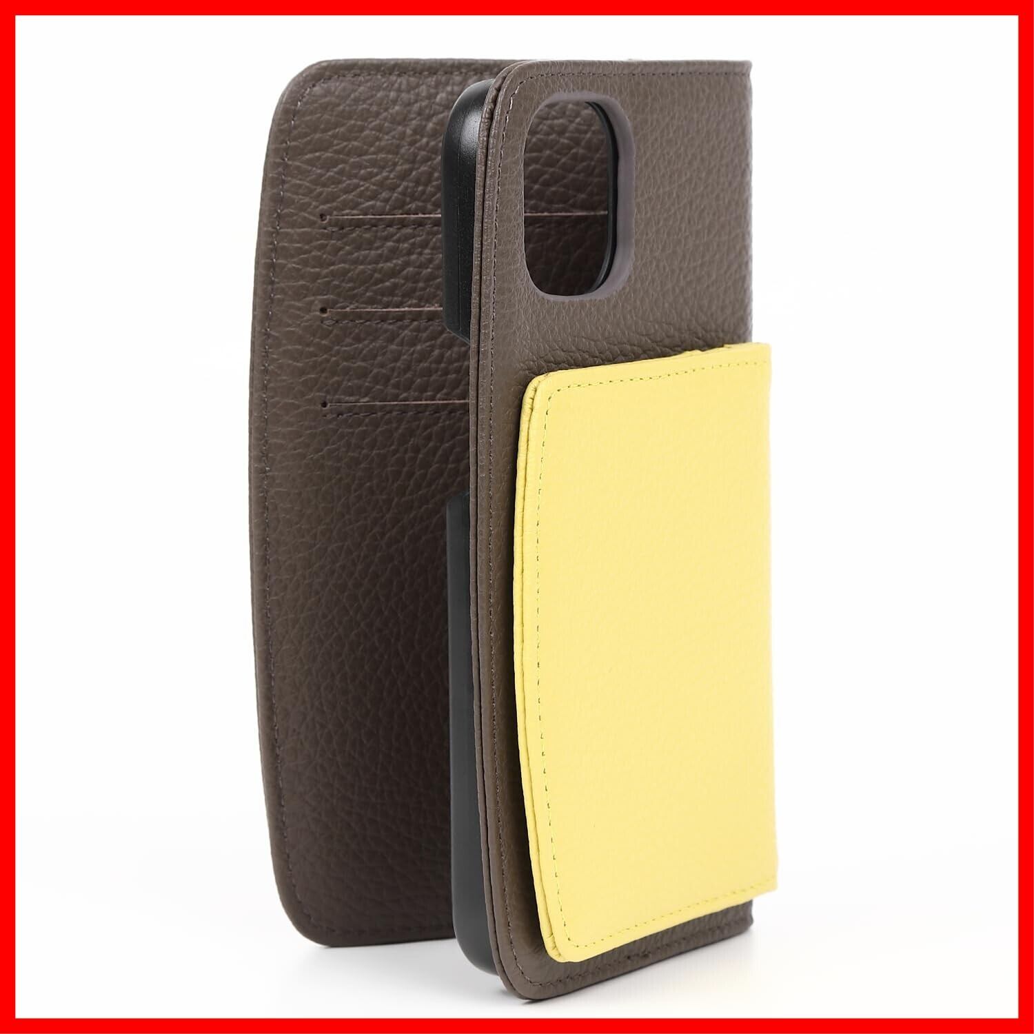 JULLY AND SHUSHU ジュリーアンドシュシュ iPhone15ケース アイフォンケース スマホケース 6.1インチ 女性用 レディース 本革 レザー かわいい オシャレ 人気 手帳型 (グレージュ×イエロー) | hananoki