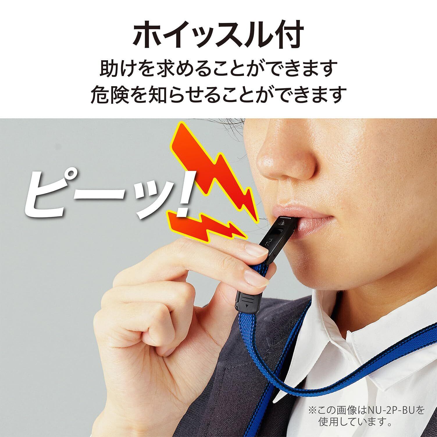 防犯、防災に役立つホイッスル機能付き
