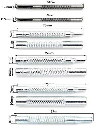 【多彩な打ち具で使い勝手抜群!】 : 本セットには、革にしっかりと打ち込むためのホック打ち具が含まれています。さまざまなサイズに対応できるのが特徴で、初心者から上級者まで幅広くご利用いただけます。レザーにぴったりの仕上がりを実現するためのアイテムが揃っています。