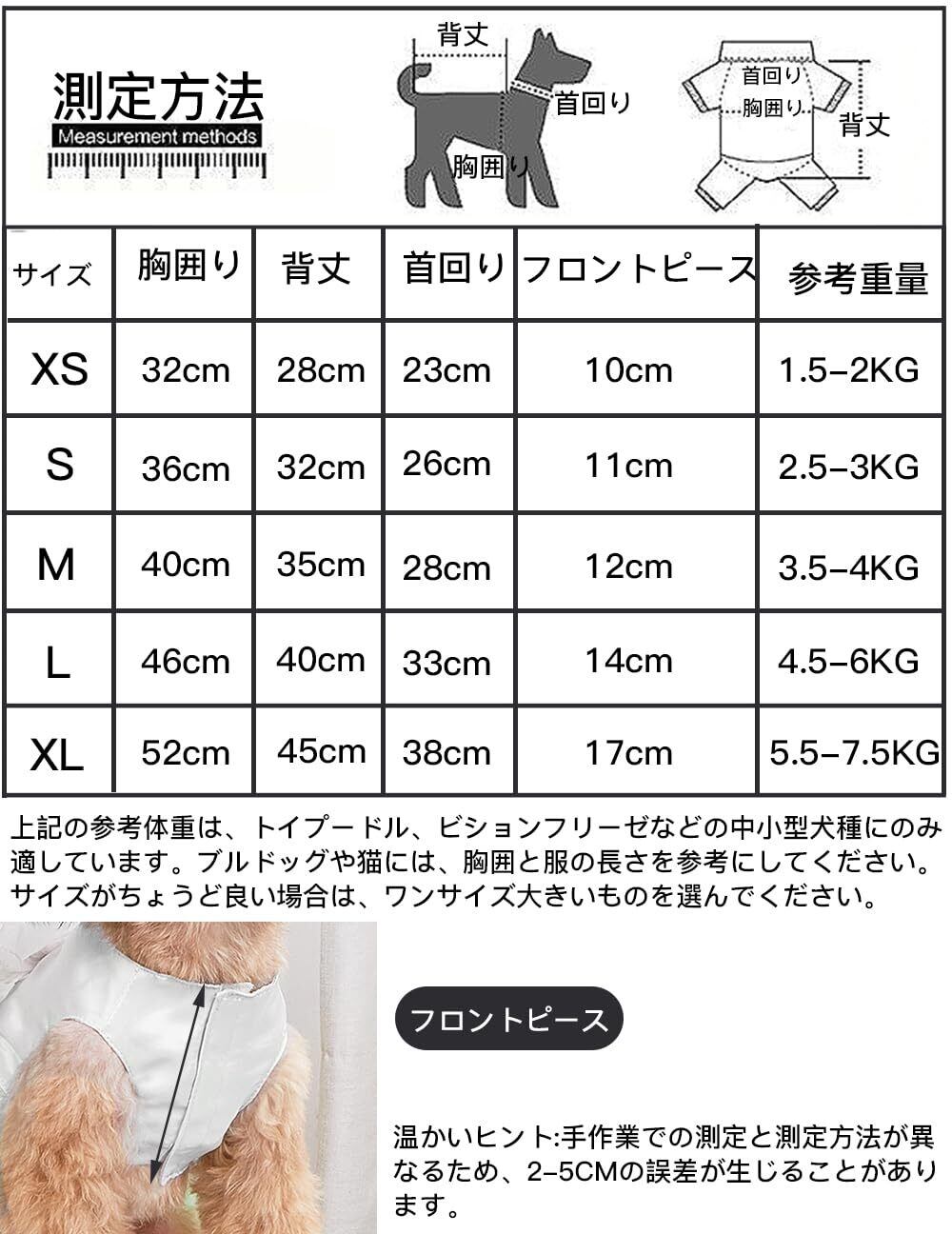 【注意】購入前には、必ずペットのサイズを測定し、ペットの実際の大きさと照らし合わせてください。ペット服のサイズは、平置き後に手作業で測定されているため、2~5cmの誤差が生じる場合があります。