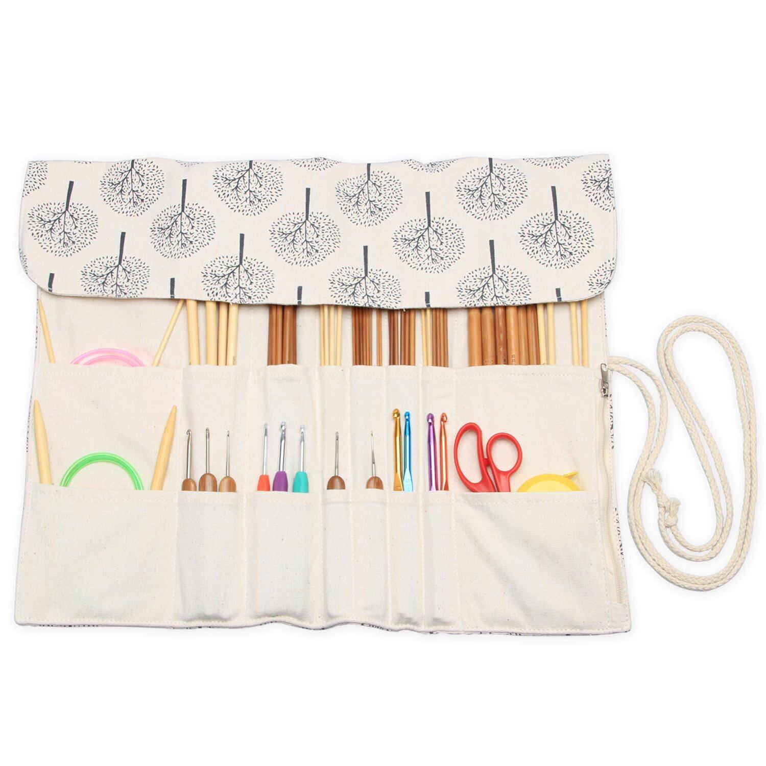 大容量:異なる深さと幅の差込口にはかぎ針・レース針・輪針・棒針(最大36CM)・編み物アクセサリーを収納できます。ファスナーポケットは小物の収納に便利です。
