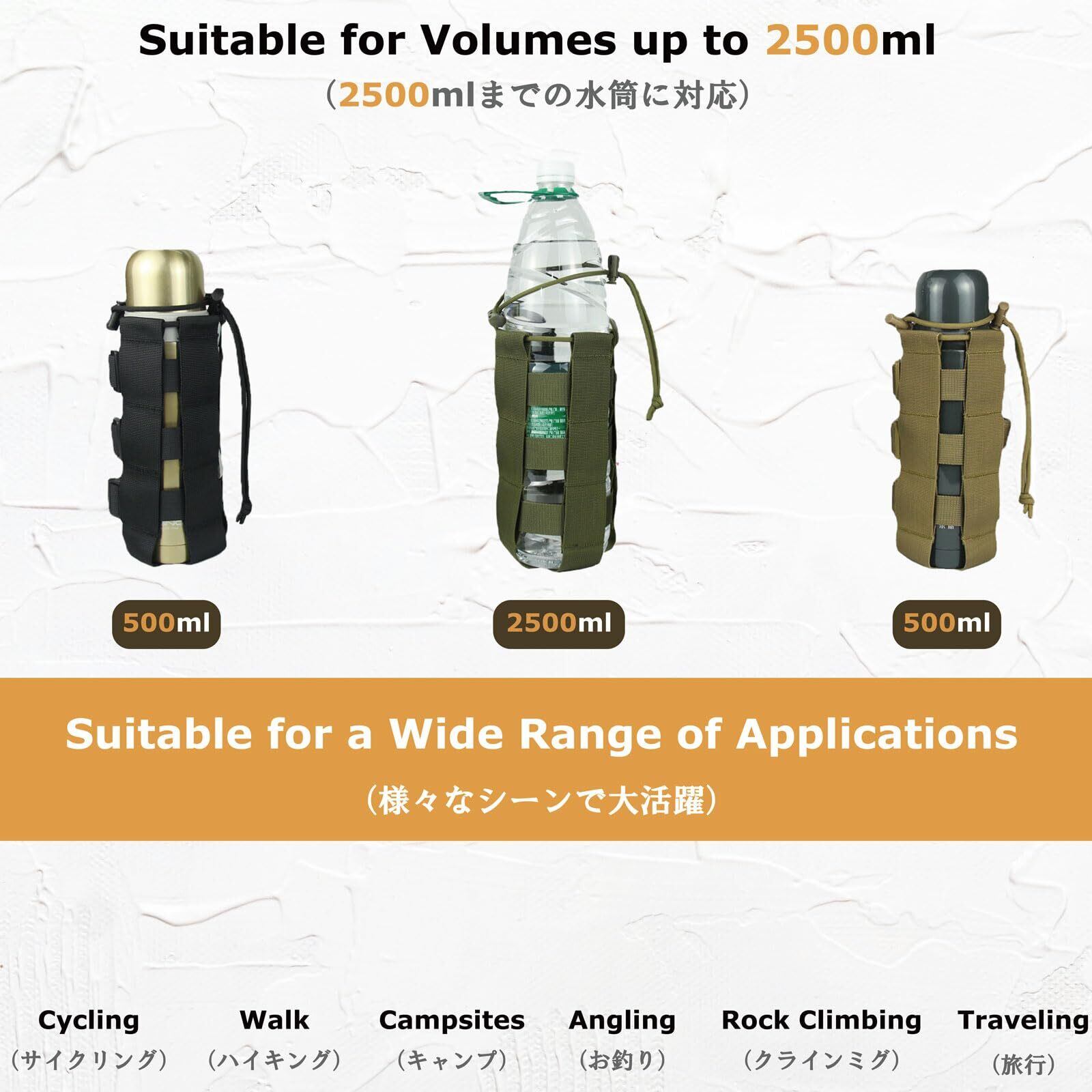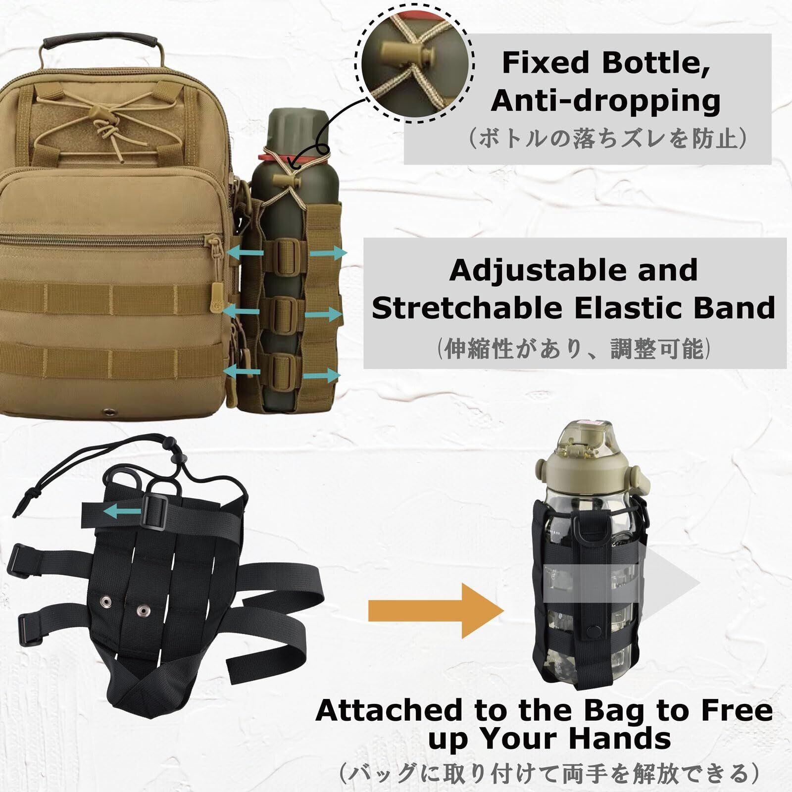 YAPJEB モールシステム 水筒 ペットボトル ホルダー ポーチ ペットボトルホルダー キャリー ミリタリー モール EDCポーチ ユーティリティポーチ 登山 バイク サバゲ― (ブラウン)