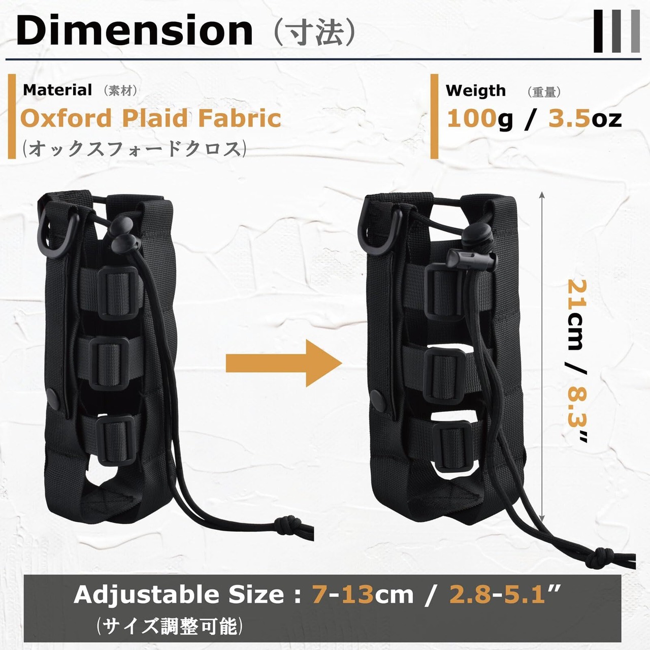 【サイズ】水筒カバー底の直径:7 - 13cm、高さ21cmです。直径13cm以下の水筒、ペットボトルが対応できます