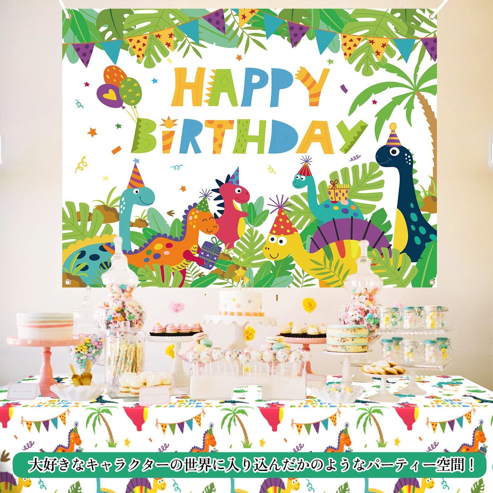 【どんなシーンにも合うデザイン!】 : 男の子・女の子を問わず楽しめる恐竜モチーフが、お祝いの雰囲気を盛り上げます。このタペストリーは誕生日のお友達をお祝いする特別な空間を演出し、写真撮影の背景にもぴったり。思い出に残る素敵な写真を残せること間違いなしです。