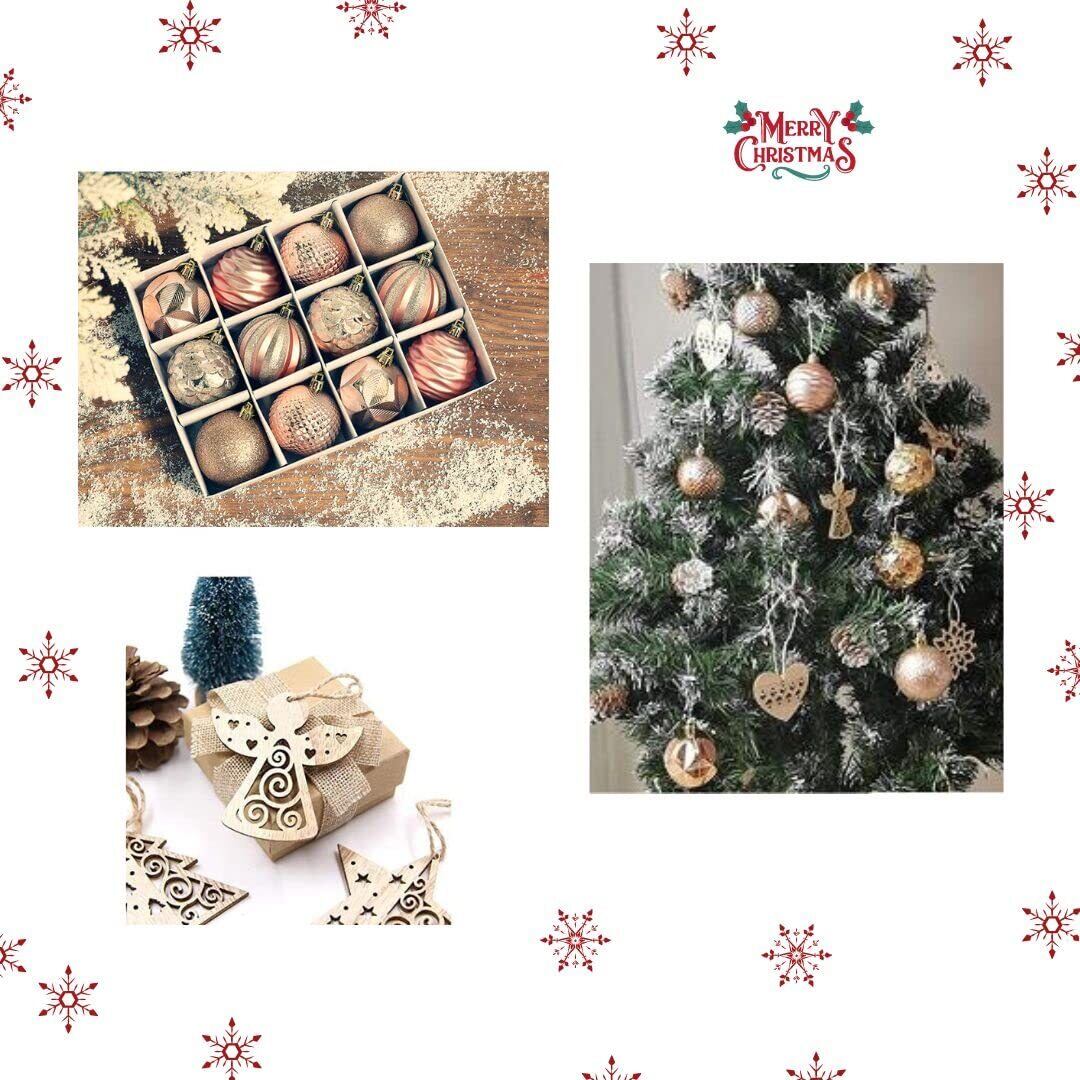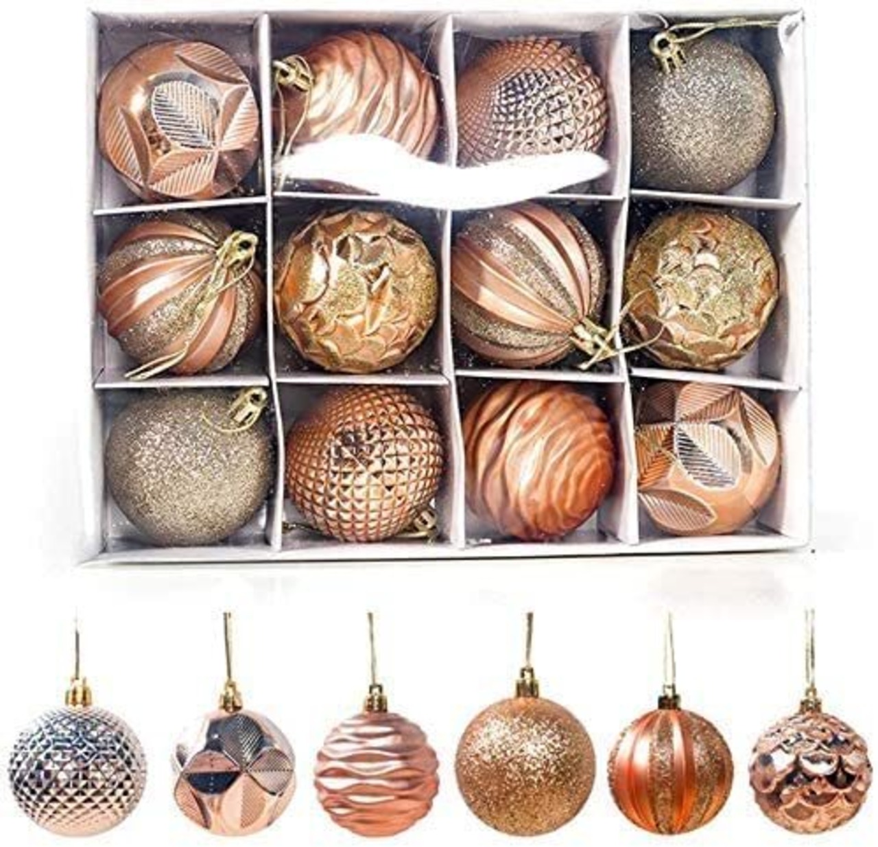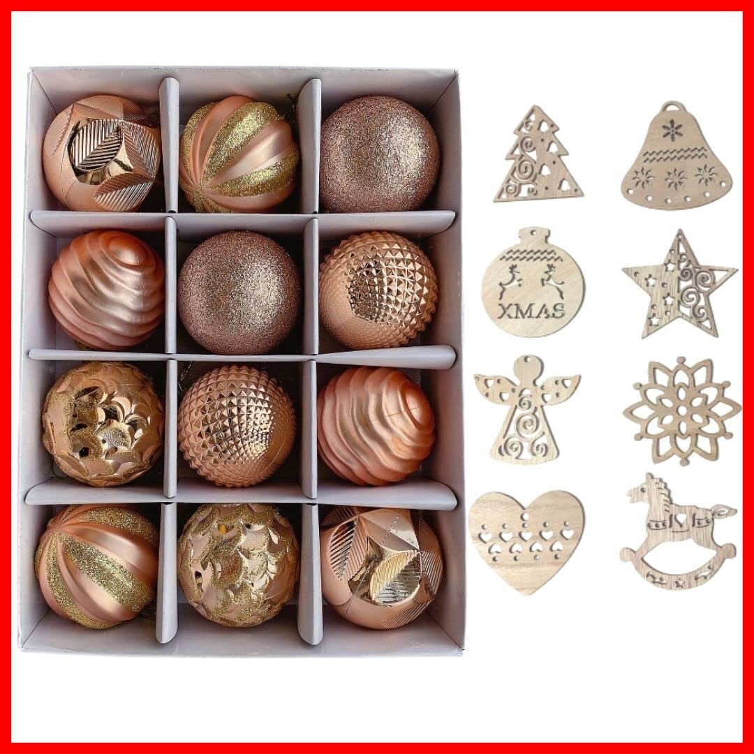 wemitas クリスマス 飾り ツリー オーナメント ボール 6cm 12個 北欧飾り 8種類 14枚付き (ブラウンゴールド)