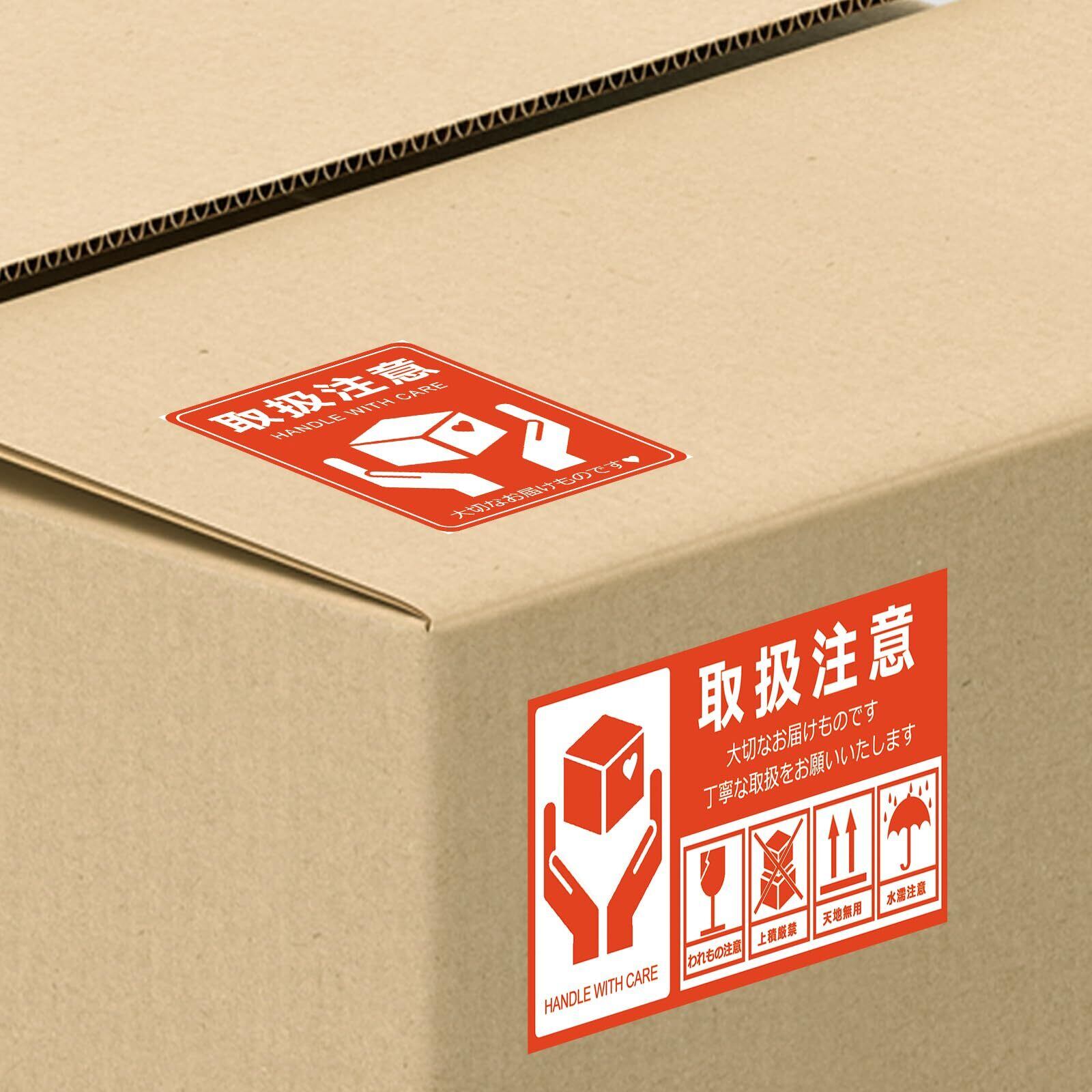 【高い視認性と安心感!】 : 目立つ赤色と力強いフォントデザインにより、運搬時に注意喚起を促します。このシールがあれば、荷物の取り扱いが一目瞭然ですので、安心して発送できます。大切な荷物を運ぶ際の強い味方です。